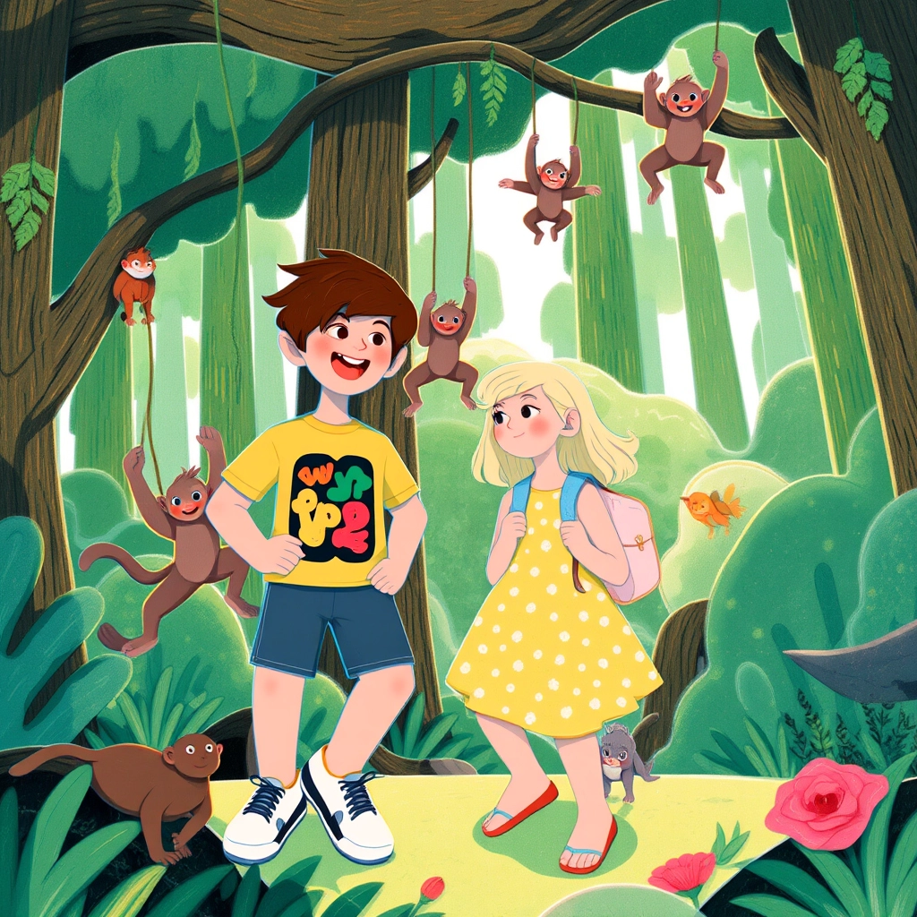The first stop was the monkey enclosure. 'Look at how they swing from branch to branch!' [Greta](9TGJ4HMP) pointed out. One mischievous monkey even acted like it was waving at them. [Ben](TW5Z2WK4) laughed, 'Maybe it wants your banana snack, [Greta](9TGJ4HMP)!'