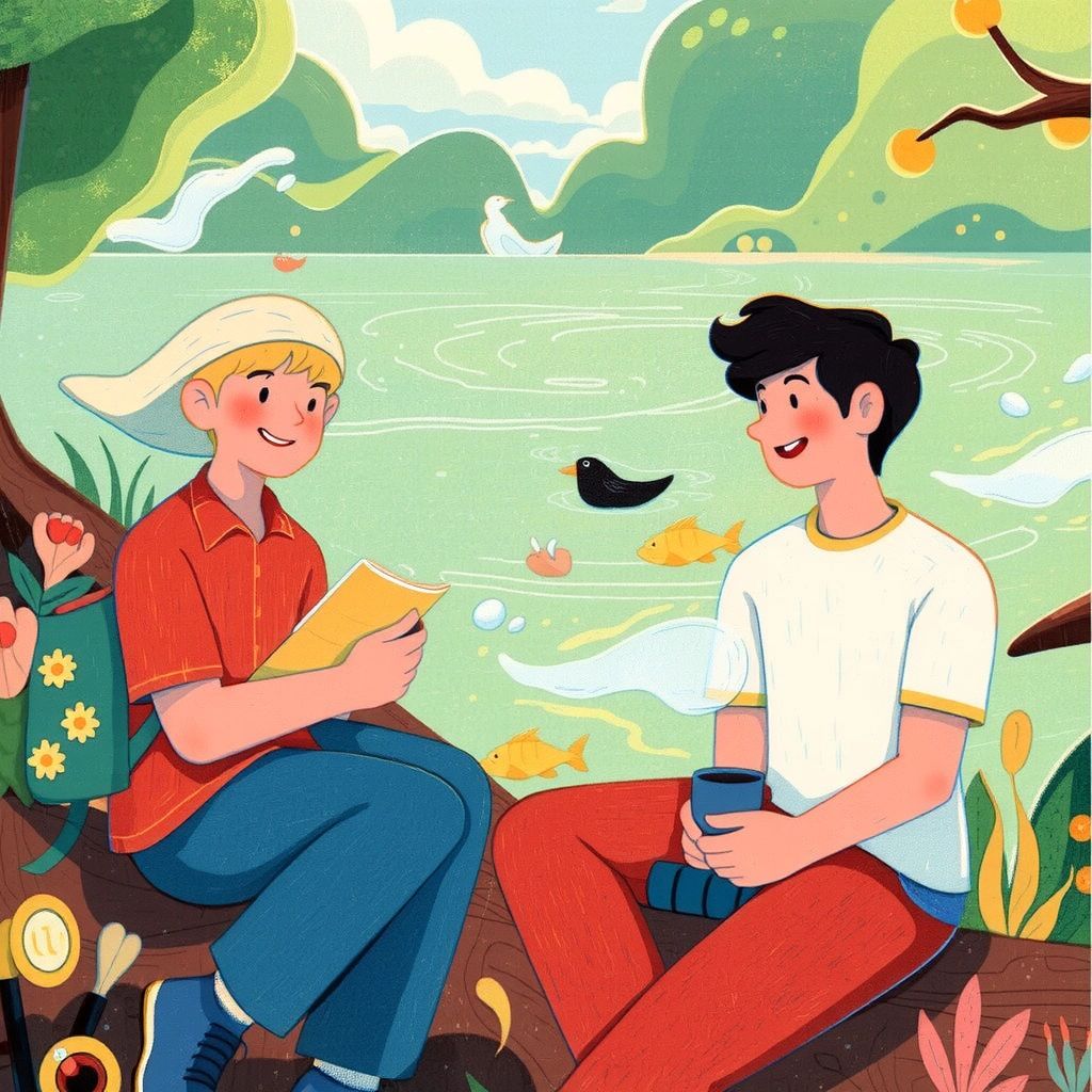 Laughter echoed and stories unfolded beside the lake as they shared tales with friendly creatures—ducks quacked, fish jumped, and the trees nodded quietly, as if to acknowledge their wishes for more adventures.