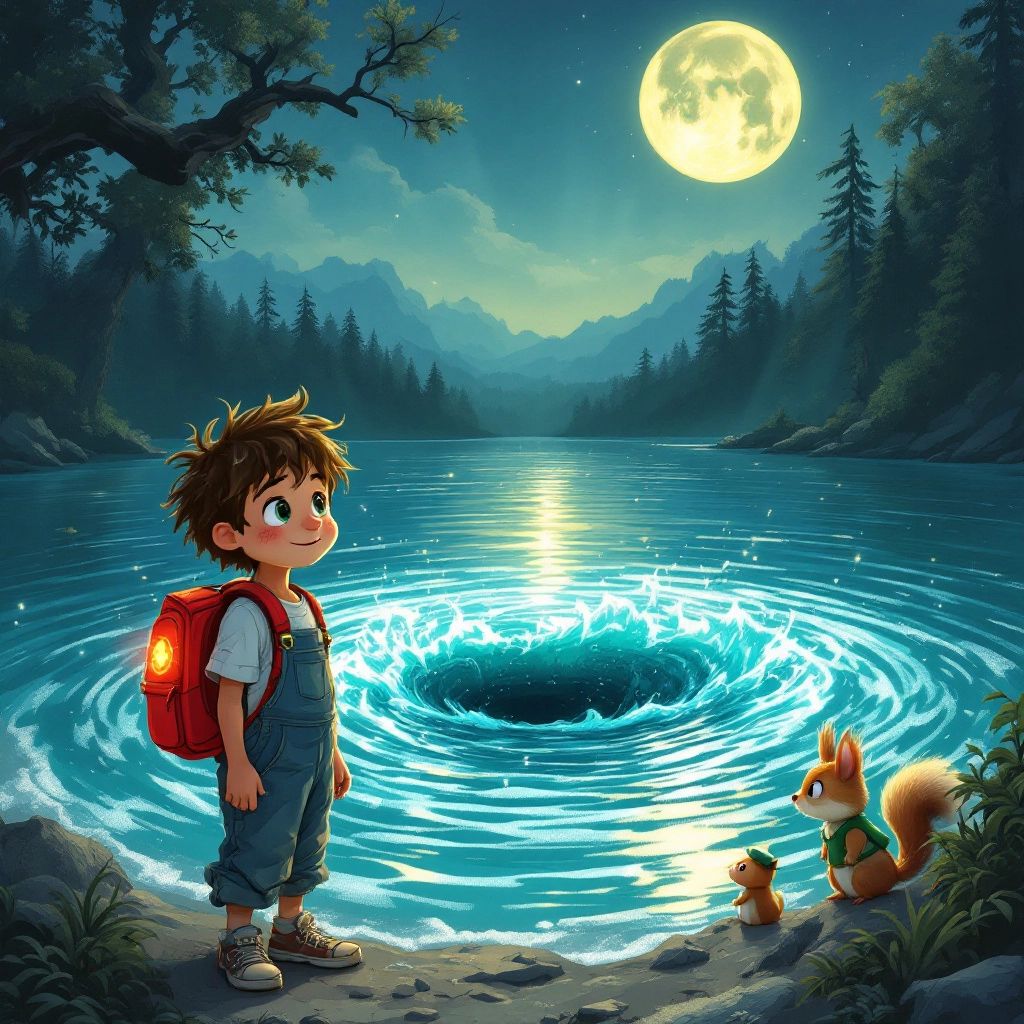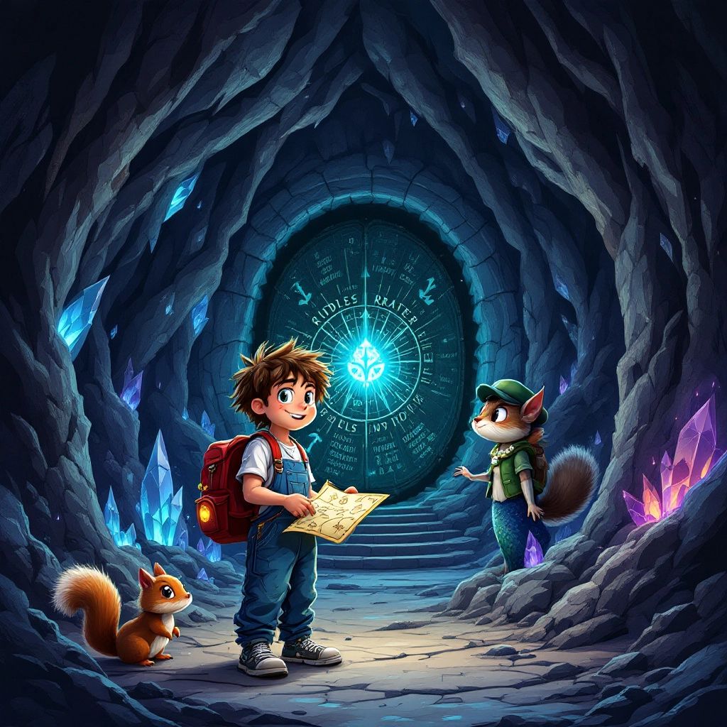 [Ben](XBH9KXY4) reached out to touch the frame, and the mirror began to glow. Suddenly, the glass rippled like water, revealing a lush, emerald forest with sparkling blue rivers. ‘Whoa! A portal!’ [Ben](XBH9KXY4) gasped, his green eyes wide with wonder. Without thinking, he stepped through the mirror.