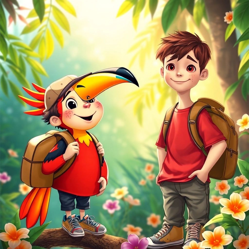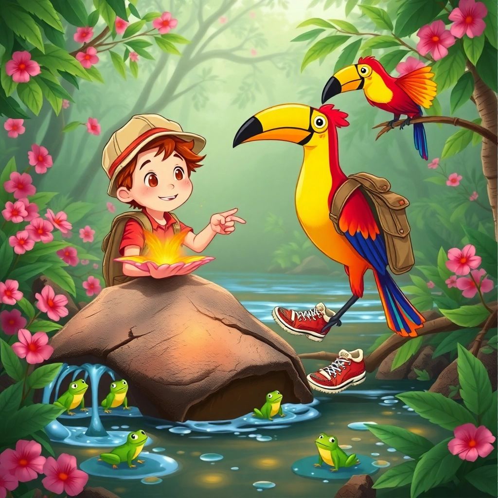 'Hello!' chirped the bird. 'I’m [Piper](9MG72RWX), the toucan. The mirror brought you here! Every place it shows is another world waiting for a helper.' [Ben](FZ339XH5) laughed, 'I’ll help! What do we need to do?'