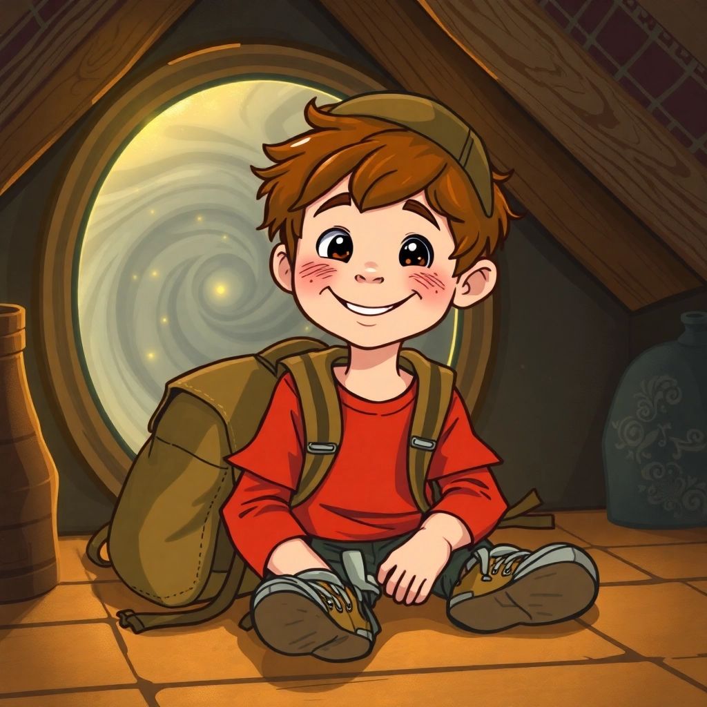 The mirror swirled once more, returning [Ben](FZ339XH5) to his attic. 'What an adventure!' he giggled, looking at the glowing mirror. 'I can’t wait to see where it takes me next!'