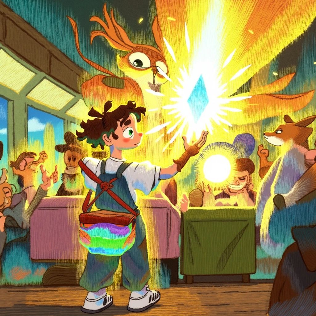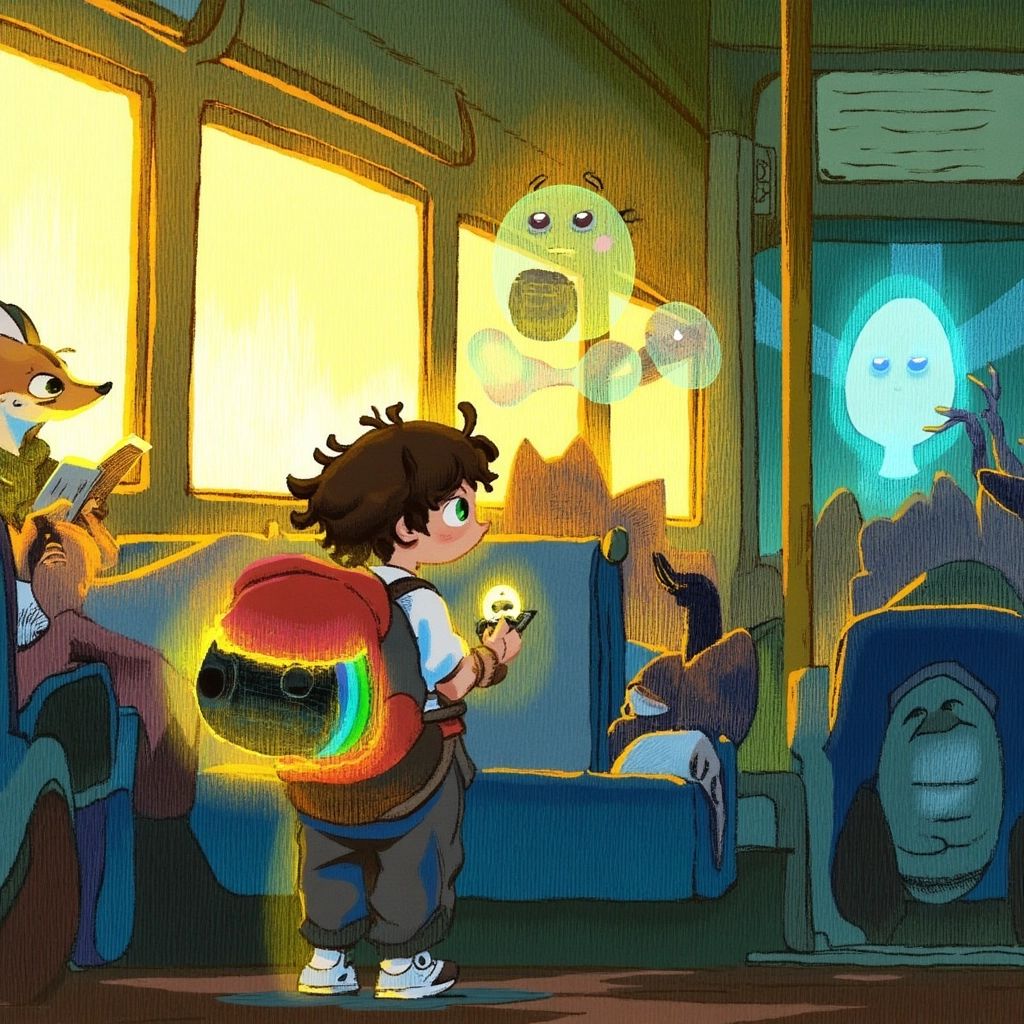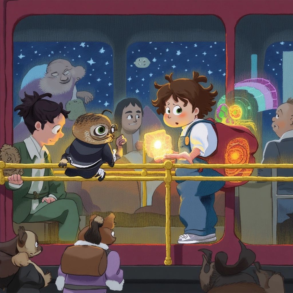 Hesitant but excited, [Ben](XBH9KXY4) nodded and jumped aboard. Inside, the train was unlike anything he had ever seen. Passengers weren’t just people—the seats were occupied by talking animals, glowing orbs, and even shadowy figures with twinkling eyes. The walls were adorned with glowing maps of far-off lands.