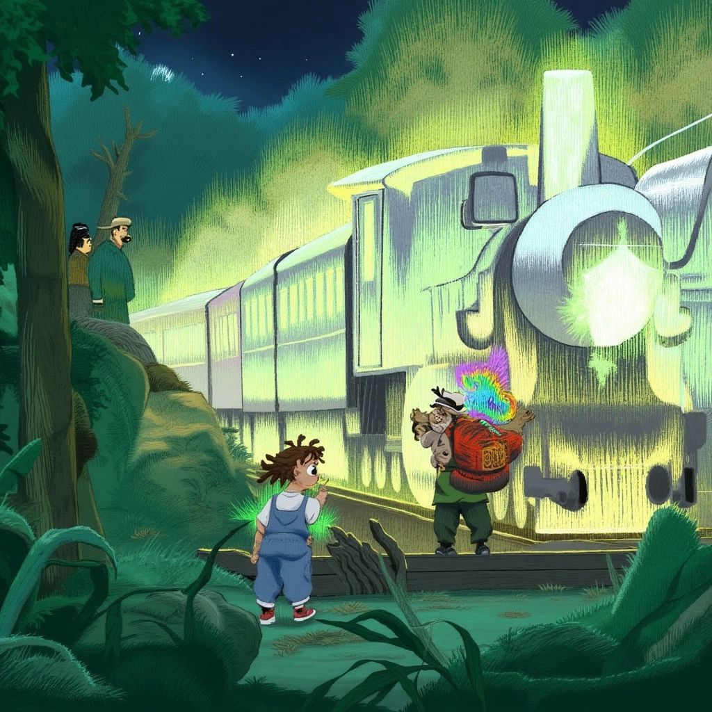 Just as the clock hit midnight, [Ben](XBH9KXY4) heard a sound—soft at first but growing louder. 'Choo-choo!' The noise came from the woods nearby. Grabbing his backpack and compass, he darted out of his room, leaving the door swinging behind him. He knew it had to be the Midnight Train—a legend in his town!