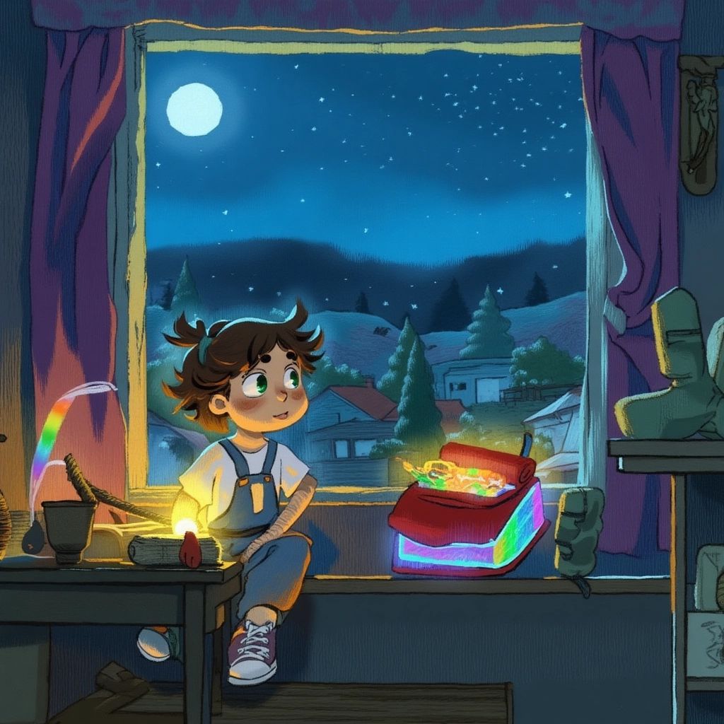 [Ben](XBH9KXY4) wasn’t like any other boy in his small town. While most spent their evenings watching TV or reading comics, [Ben](XBH9KXY4) loved mysteries. Tonight, as the clock struck 11:30 PM, [Ben](XBH9KXY4) sat by his window, holding his glowing rainbow-colored compass. Tonight, he had a feeling something magical was going to happen.