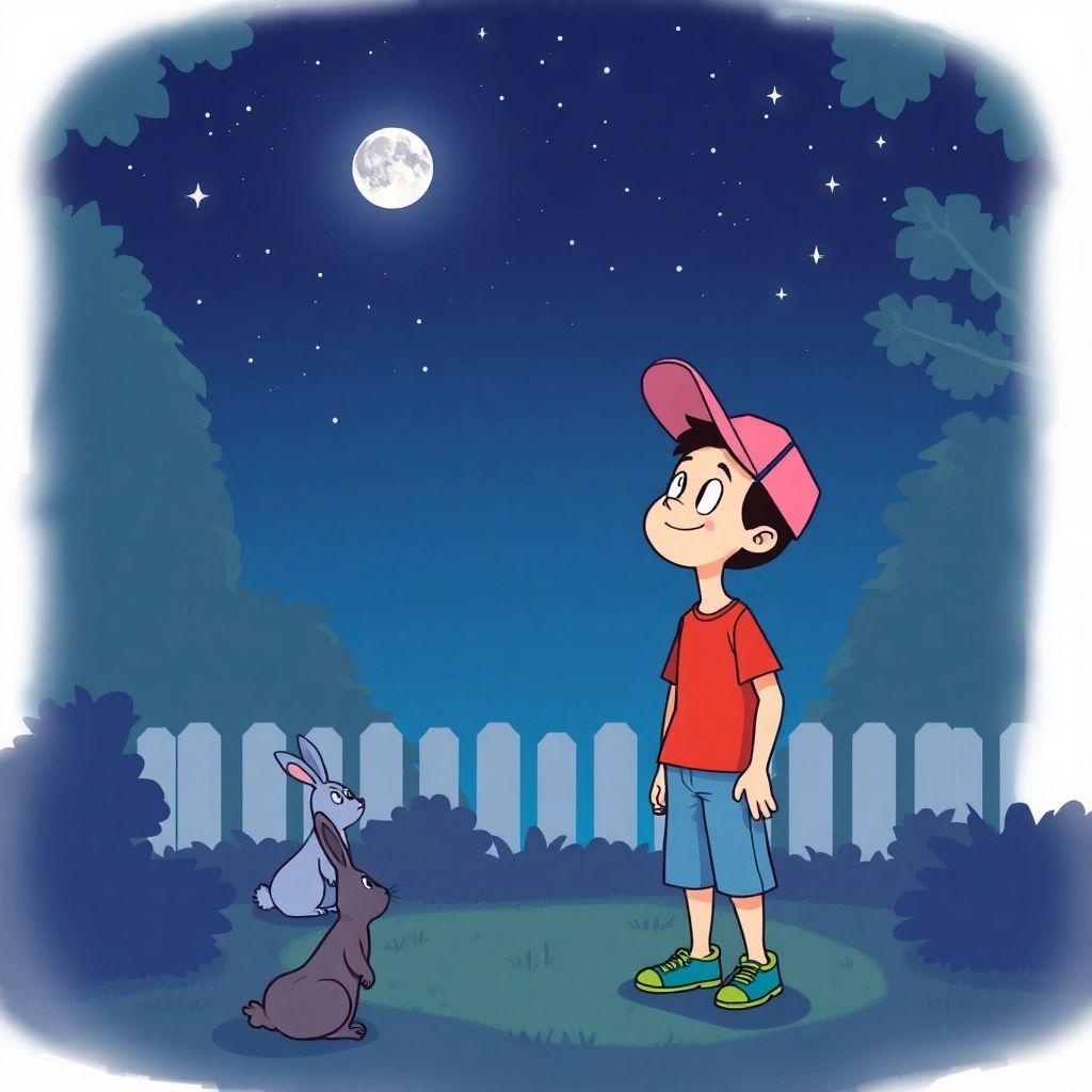 Once upon a time, on a warm summer night, cheerful [Ben](Y3NVZYX9) looked up at the sky. His eyes widened in surprise— the moon was missing!