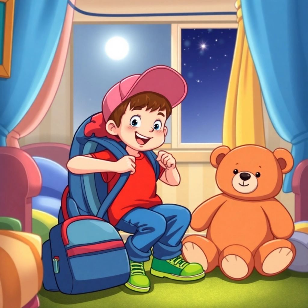 [Ben](Y3NVZYX9) decided to embark on an exciting adventure to find the missing moon. He packed his backpack with important things: a flashlight, a sandwich, and his favorite teddy bear.
