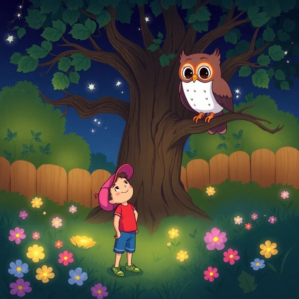 As [Ben](Y3NVZYX9) stepped outside, he heard a soft rustle. It was Lucy, the wise owl, perched in the big tree. 'Are you looking for the moon too?' she hooted.
