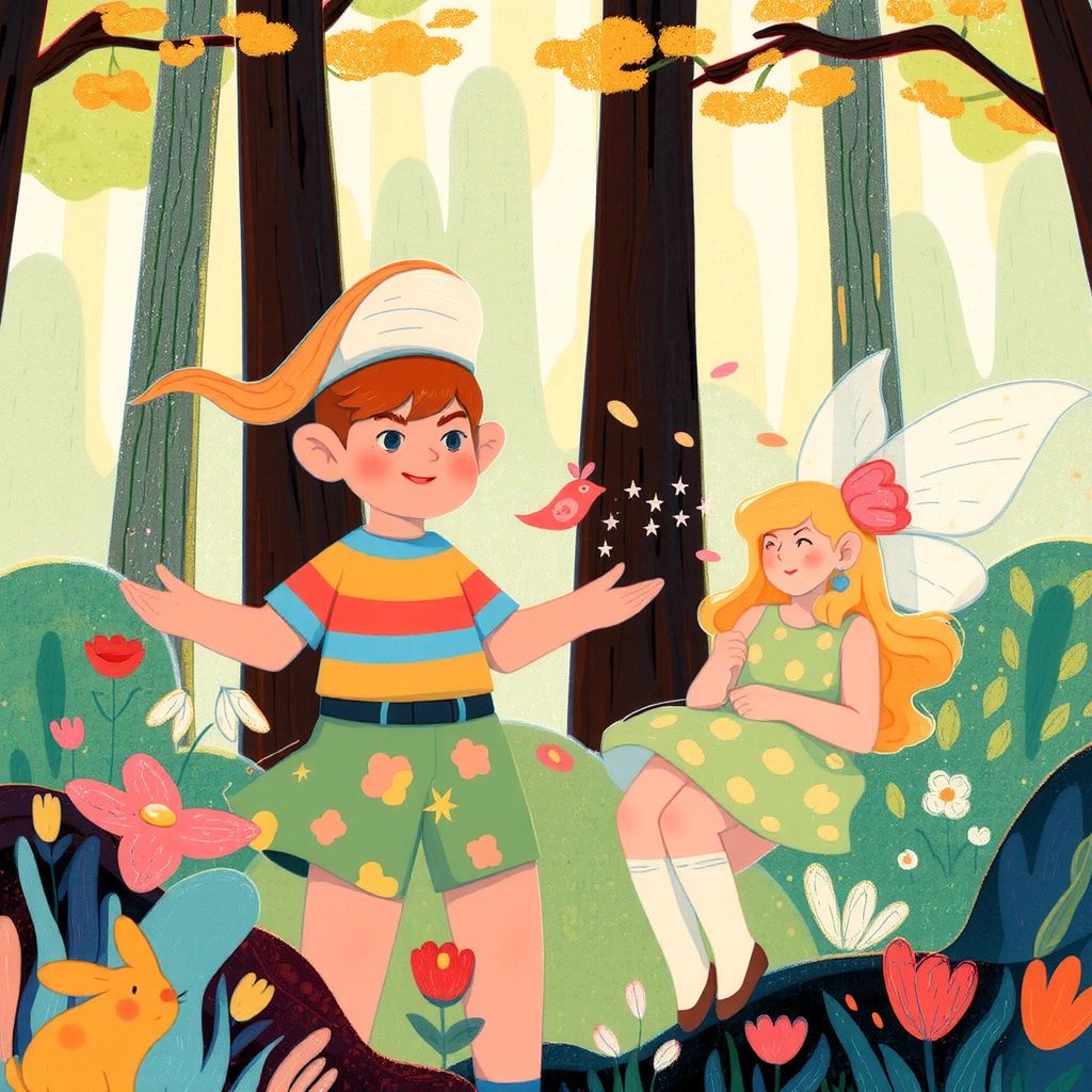 As [Ben](Y3NVZYX9) skipped through the playful forest, he met [Flora](KS2WSP39), a friendly fairy with sparkling wings and a mischievous smile. [Flora](KS2WSP39) agreed to guide [Ben](Y3NVZYX9), sprinkling magical fairy dust along the way.
