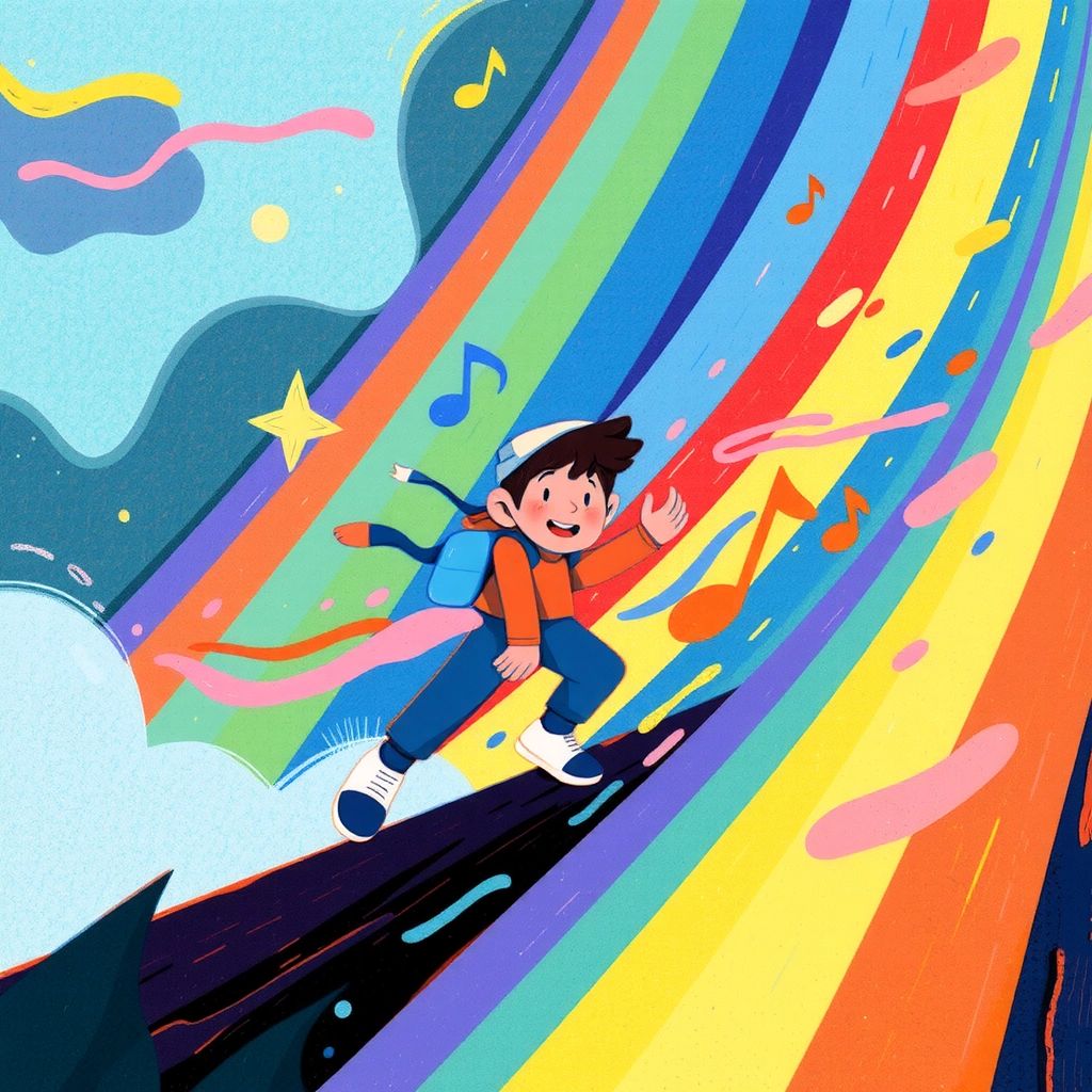 Gathering his courage, [Ben](FZ339XH5) stepped onto the rainbow bridge. With each step, the colors beneath his feet sang sweet, melodious tunes, filling him with joy.