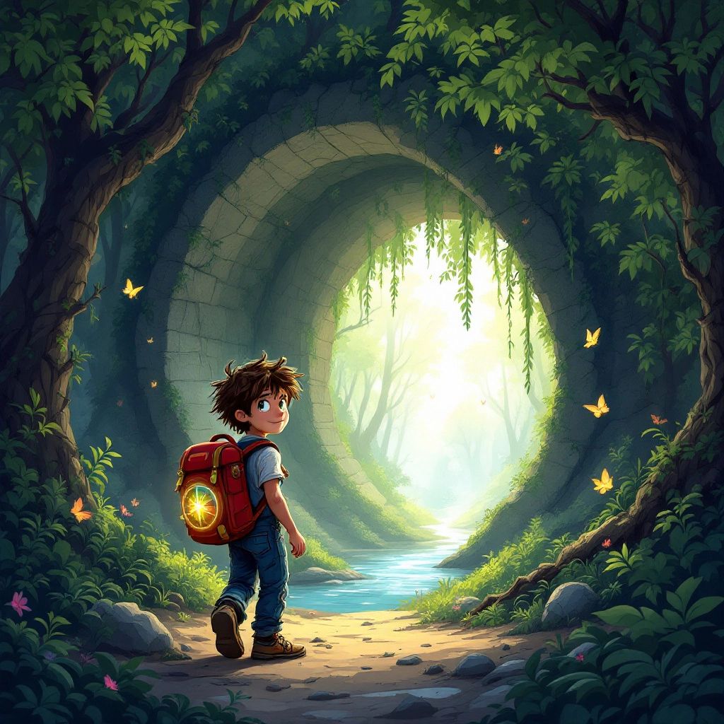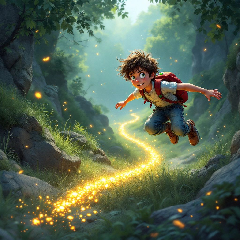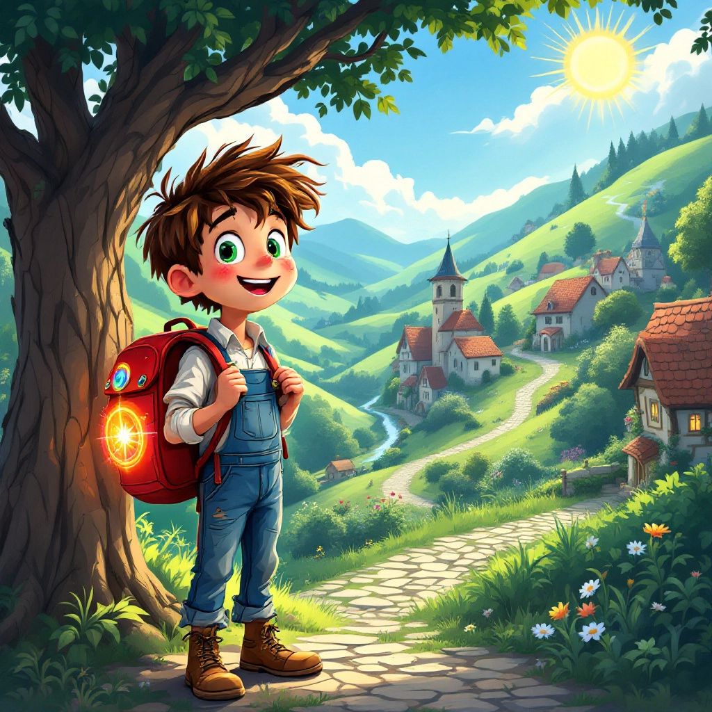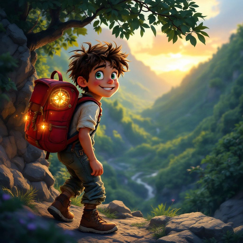 In the small village of Willowbrook, there lived a daring boy named [Ben](XBH9KXY4). He loved exploring and always carried his glowing red backpack that held a magical rainbow compass. One sunny morning, the compass started to spin wildly, pointing toward the secretive Hidden Valley.