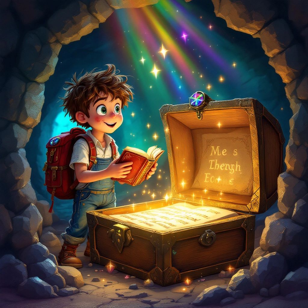 Excited, [Ben](XBH9KXY4) placed the book into his glowing red backpack. He climbed out of the valley, knowing he’d found something even more valuable than treasure—knowledge and the courage within himself.