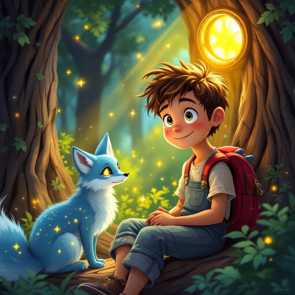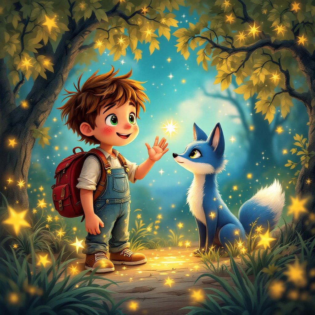 Suddenly, a blue fox with golden eyes appeared and wagged its fluffy tail. 'Welcome, [Ben](XBH9KXY4)!' it said. [Ben](XBH9KXY4) blinked. 'You can talk?' The fox chuckled, 'Of course! I’m [Lune](RH69L3KP), your guide. You'll need me for the adventures ahead!'