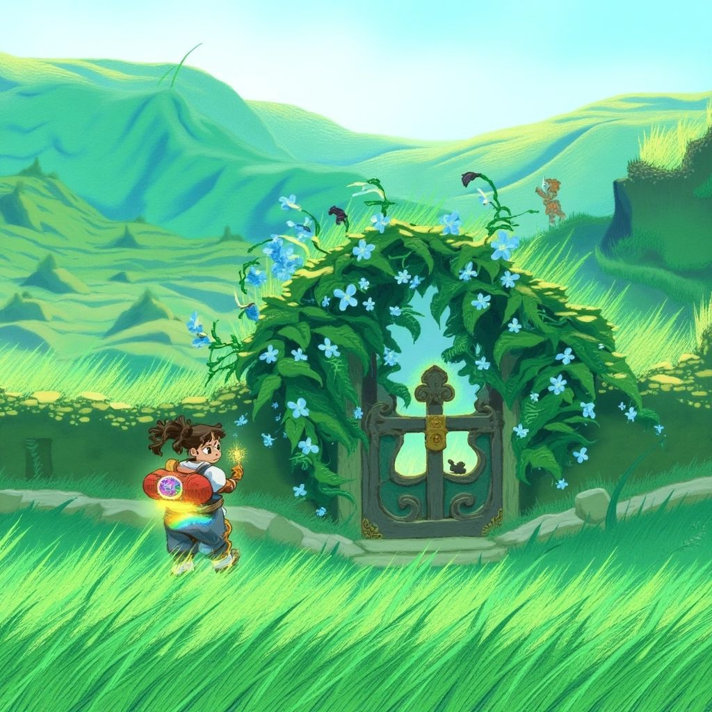 One sunny afternoon, while wandering beyond the meadows behind his house, [Ben](XBH9KXY4) stumbled upon a twisted iron gate shrouded in ivy. A gentle breeze seemed to whisper his name, and he hesitated, placing his hand on the cold, ornate latch. The rainbow compass in his glowing red backpack started to buzz with excitement.