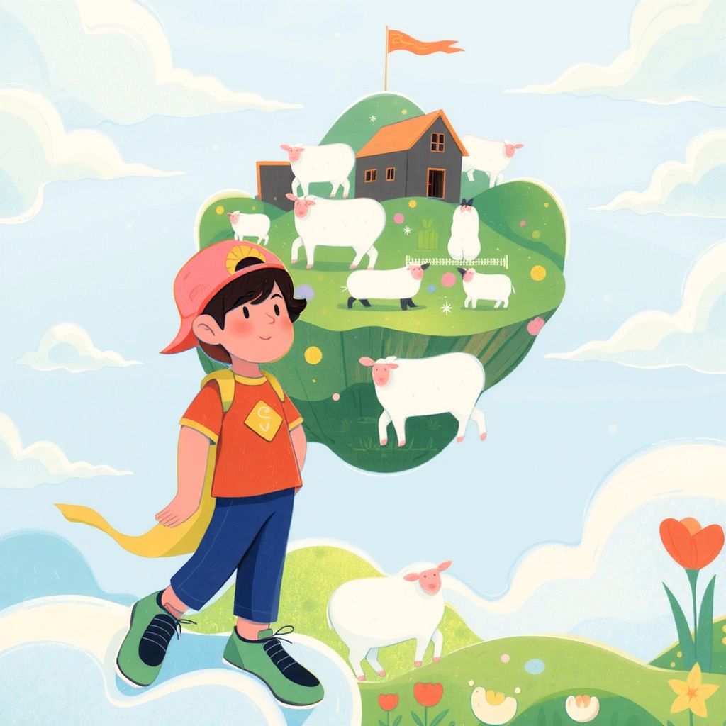 Soon, [Ben](Y3NVZYX9) noticed a floating island, lush with green trees and colorful flowers. It was home to a family of cloud sheep!