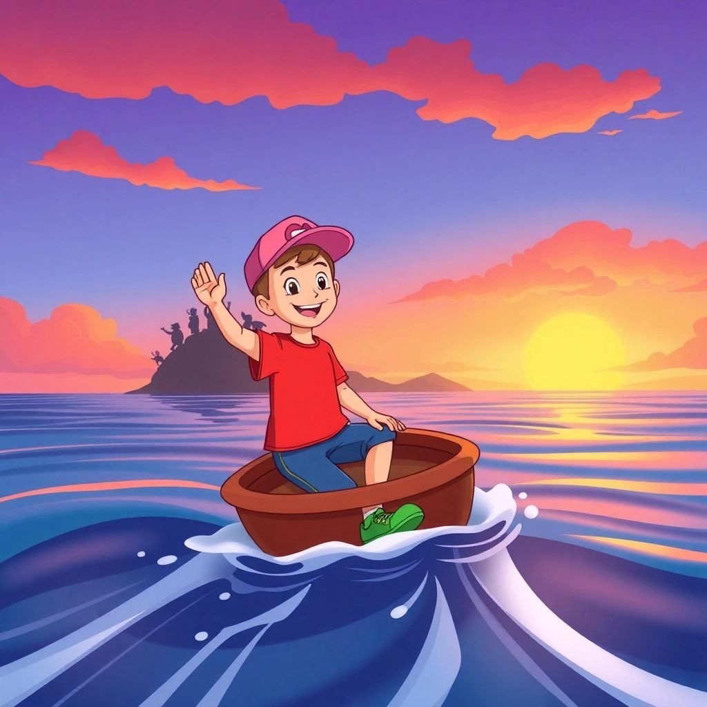 With treasures and new friends, [Ben](Y3NVZYX9) waved goodbye. He knew he'd have more adventures on the island, full of secrets and fun.
