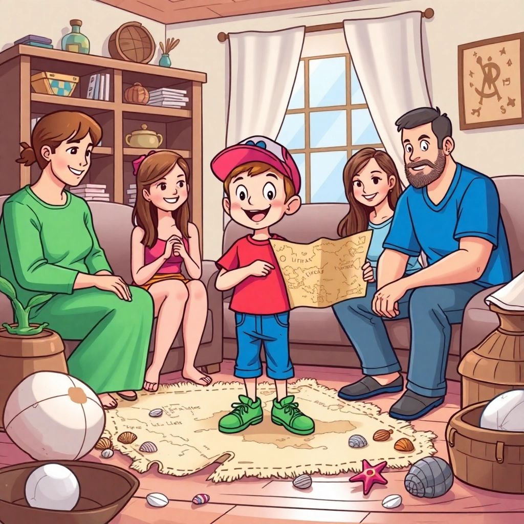 Back home, [Ben](Y3NVZYX9) shared stories of his mysterious island adventure, showing all his treasures. And he knew, each day was a chance for a new adventure.