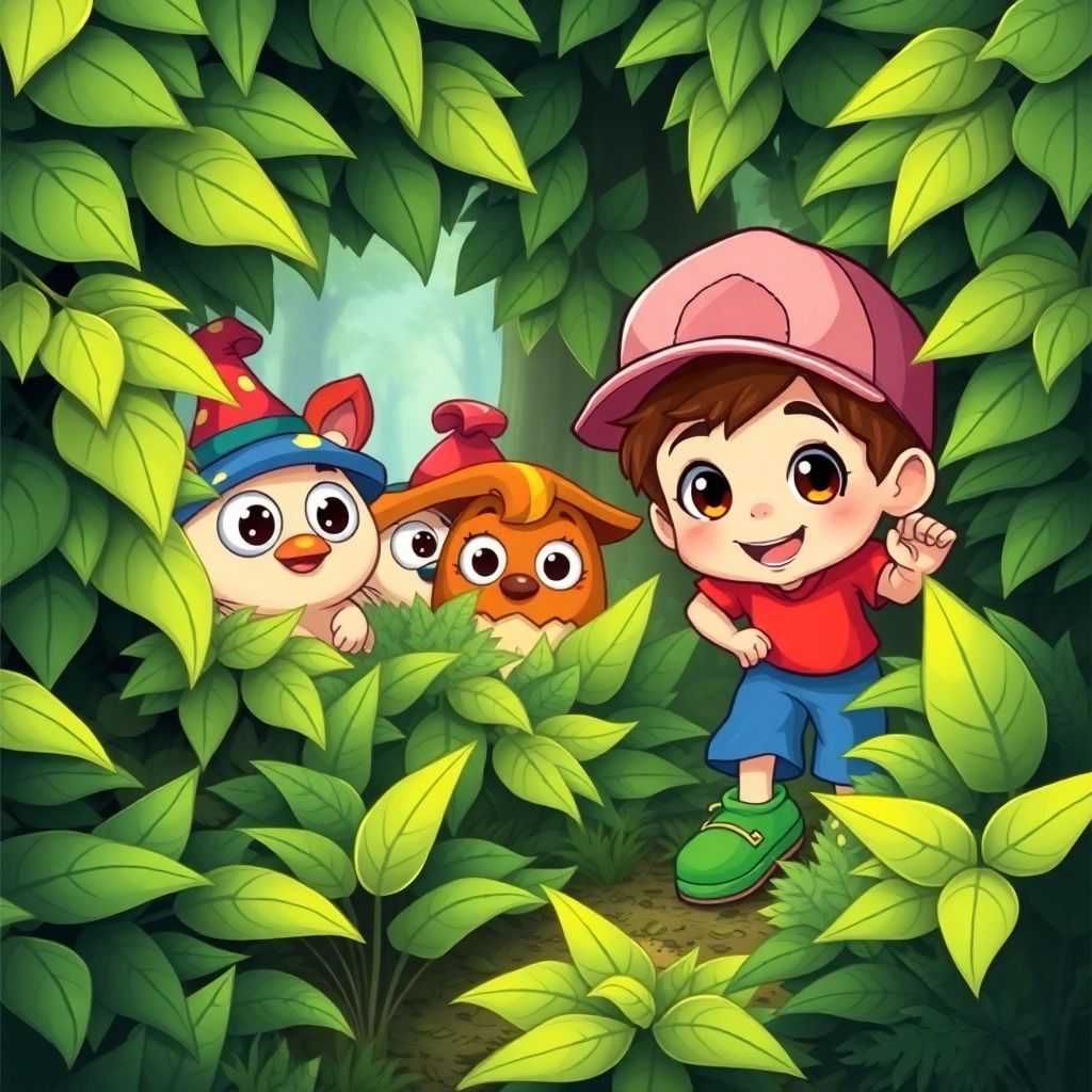 Suddenly, [Ben](Y3NVZYX9) heard a rustling sound from behind the bushes. He peeked through and saw a family of friendly little creatures with funny hats.