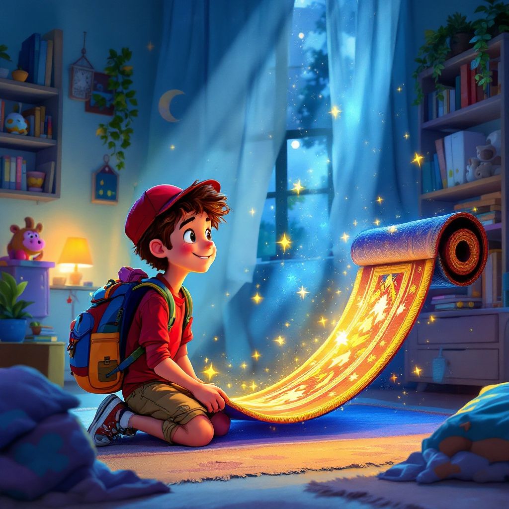 Back in his room, [Ben](FZ339XH5) gave the carpet a pat. "Thank you, magic carpet. What a fun day!" The carpet glowed once more and rolled itself up.