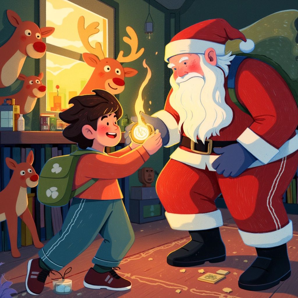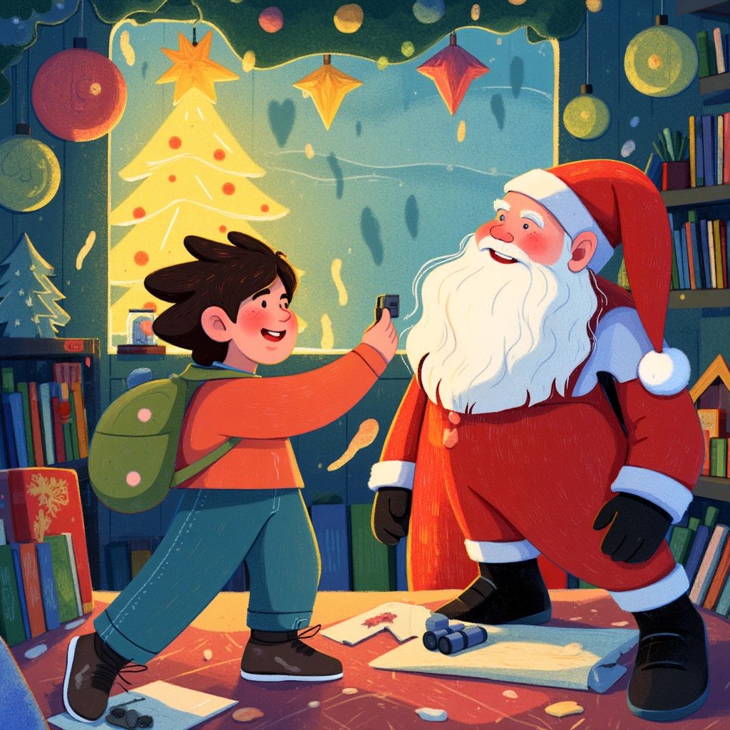 Their journey carried them across the globe and before [Ben](FZ339XH5) knew it, they were back at the North Pole. "Thank you, [Santa](69XXNPWF)," [Ben](FZ339XH5) beamed, filled with joy and wonder. [Santa](69XXNPWF) handed him a small, glowing compass. "To guide you on all your adventures," he chuckled.