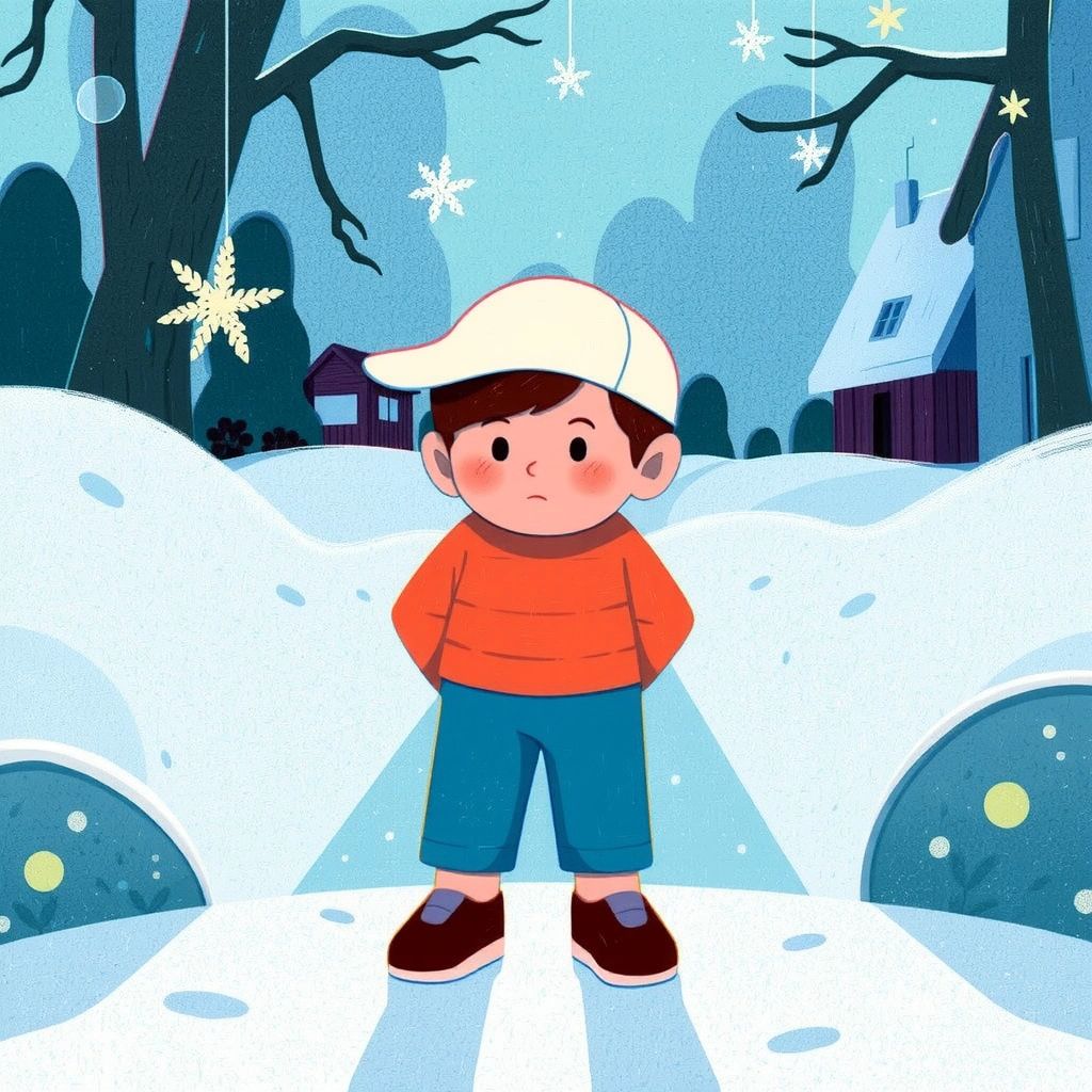 On a chilly winter evening, [Ben](FZ339XH5) put on his white baseball cap and a cozy jacket, preparing for a dreamy adventure. His room was filled with pictures of the North Pole, and tonight, he was determined to see it for himself!