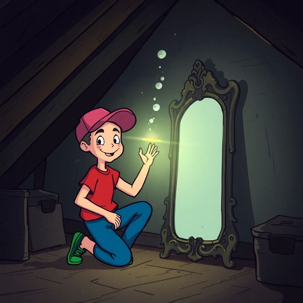 [Ben](Y3NVZYX9) was always looking for adventure. One day, while exploring his grandmother's attic, he found an old, dusty mirror hidden behind some boxes. As he wiped away the cobwebs, the mirror began to glow!