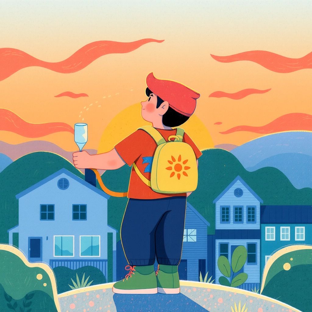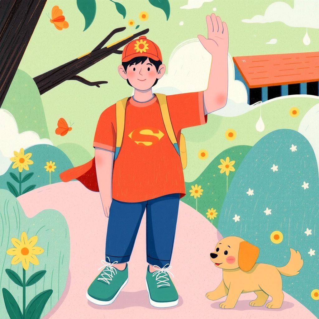 [Ben](Y3NVZYX9) realized adventures are more fun with friends, whether they are cloudy, fluffy, or furry. He waved goodbye to [Ruffles](KS54MCDD), ready for his next invention.