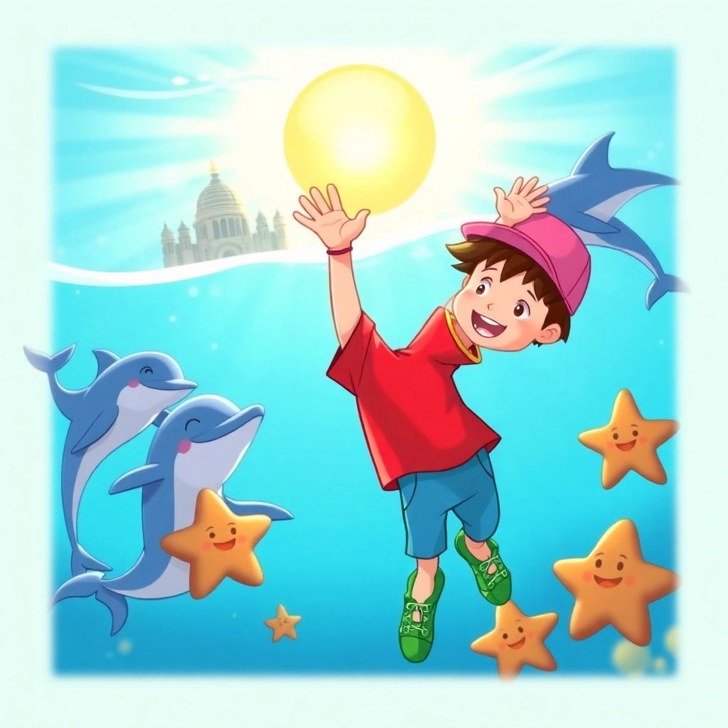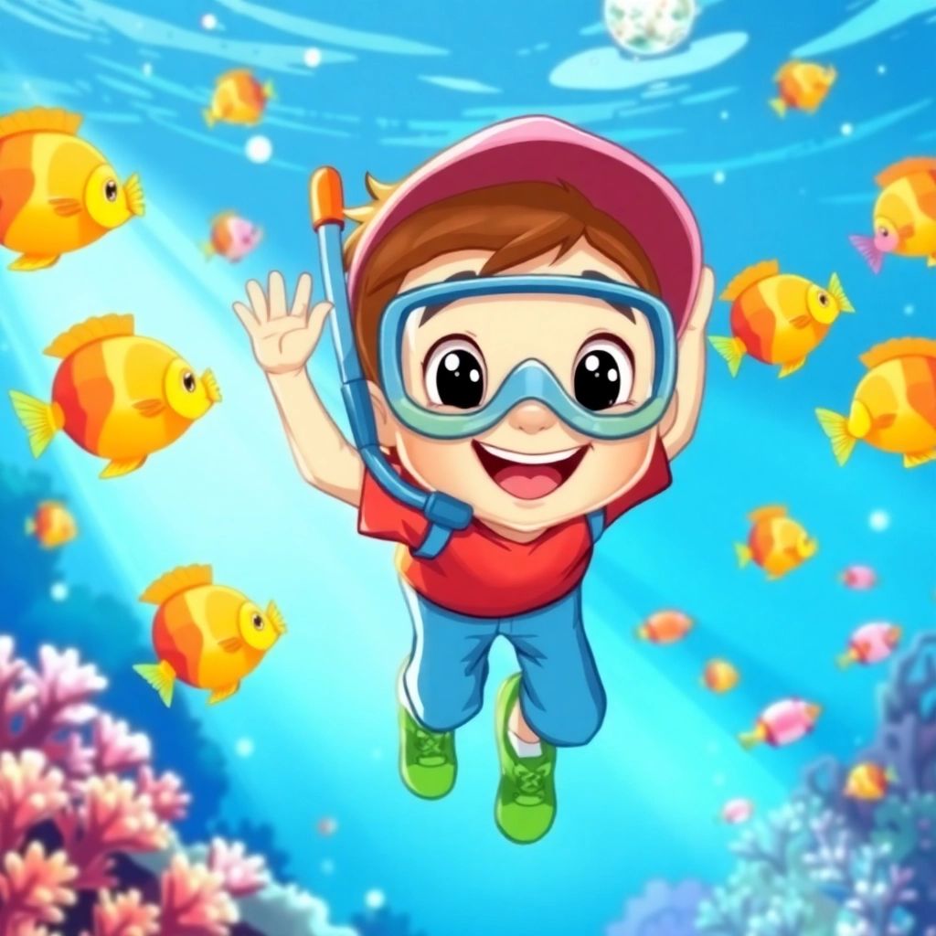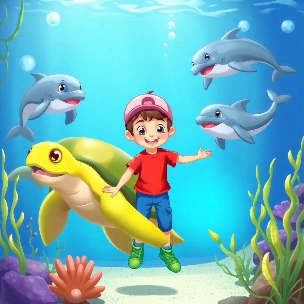 Once upon a time, a cheerful young boy named [Ben](Y3NVZYX9) lived by the ocean. He loved wearing his blue pants, red t-shirt, green shoes, and his favorite pink baseball cap. Today, [Ben](Y3NVZYX9) was ready for an underwater adventure!