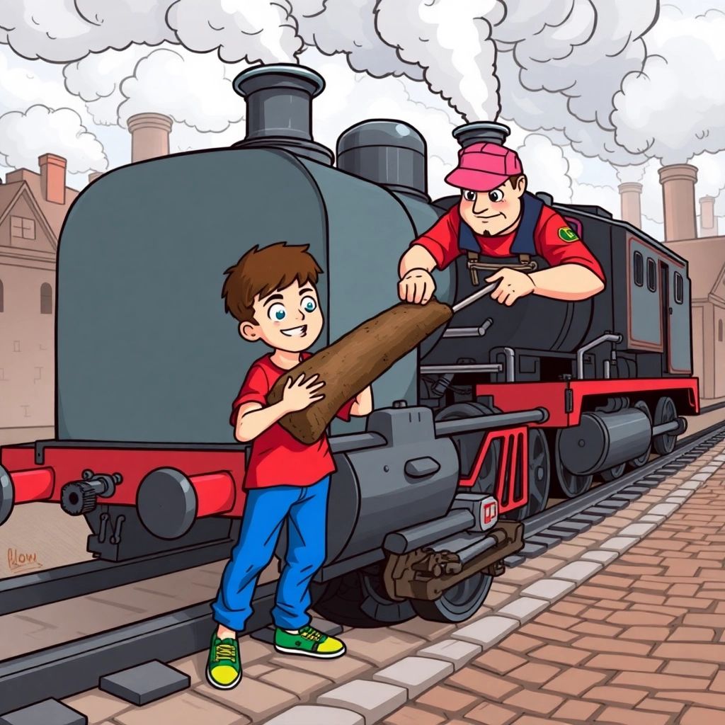 [Ben](Y3NVZYX9) noticed the train was out of coal. He and the engineer quickly shoveled more in, helping the train continue its journey to deliver important goods on time.