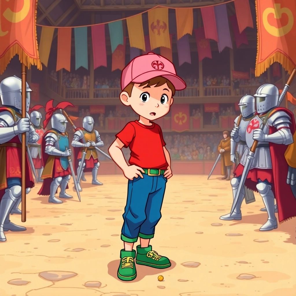 [Ben](Y3NVZYX9)'s next stop was medieval times, where he stumbled upon a jousting tournament. The knights were excited for the event, but one of the knights couldn't find his lucky charm!
