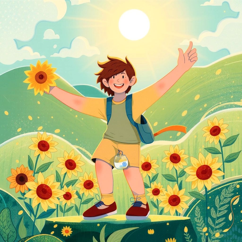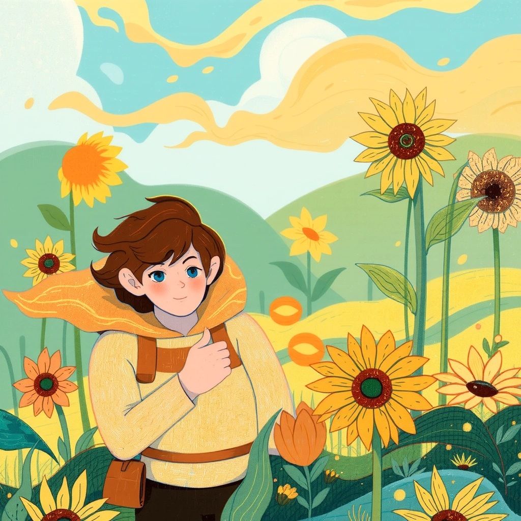 [Benjamin](KCVJTLG6) twirled among the sunflowers, feeling the sun's warm kiss. Glorious yellow rays streamed into his pouch, filling it with vibrant energy. He felt a sense of closeness to nature, his heart glowing just like the sun.