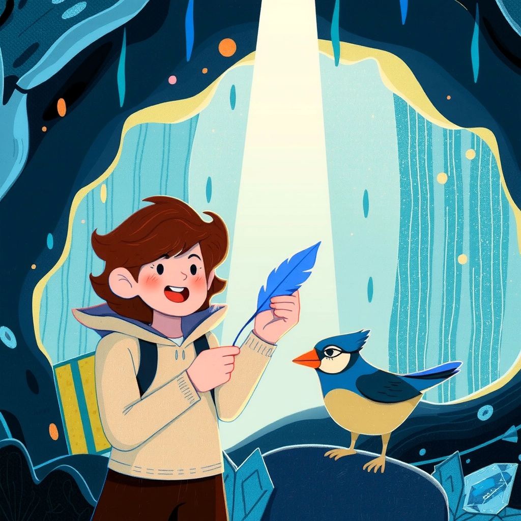 Next, [Benjamin](KCVJTLG6) visited the Crystal Caverns, where the blue jay birds sang. Deep within, he found the regal [Blue Jay King](R3JBFPZN) perched majestically on a gemstone throne. "For the blue of the rainbow, you must sing a song of joy," said the [Blue Jay King](R3JBFPZN).