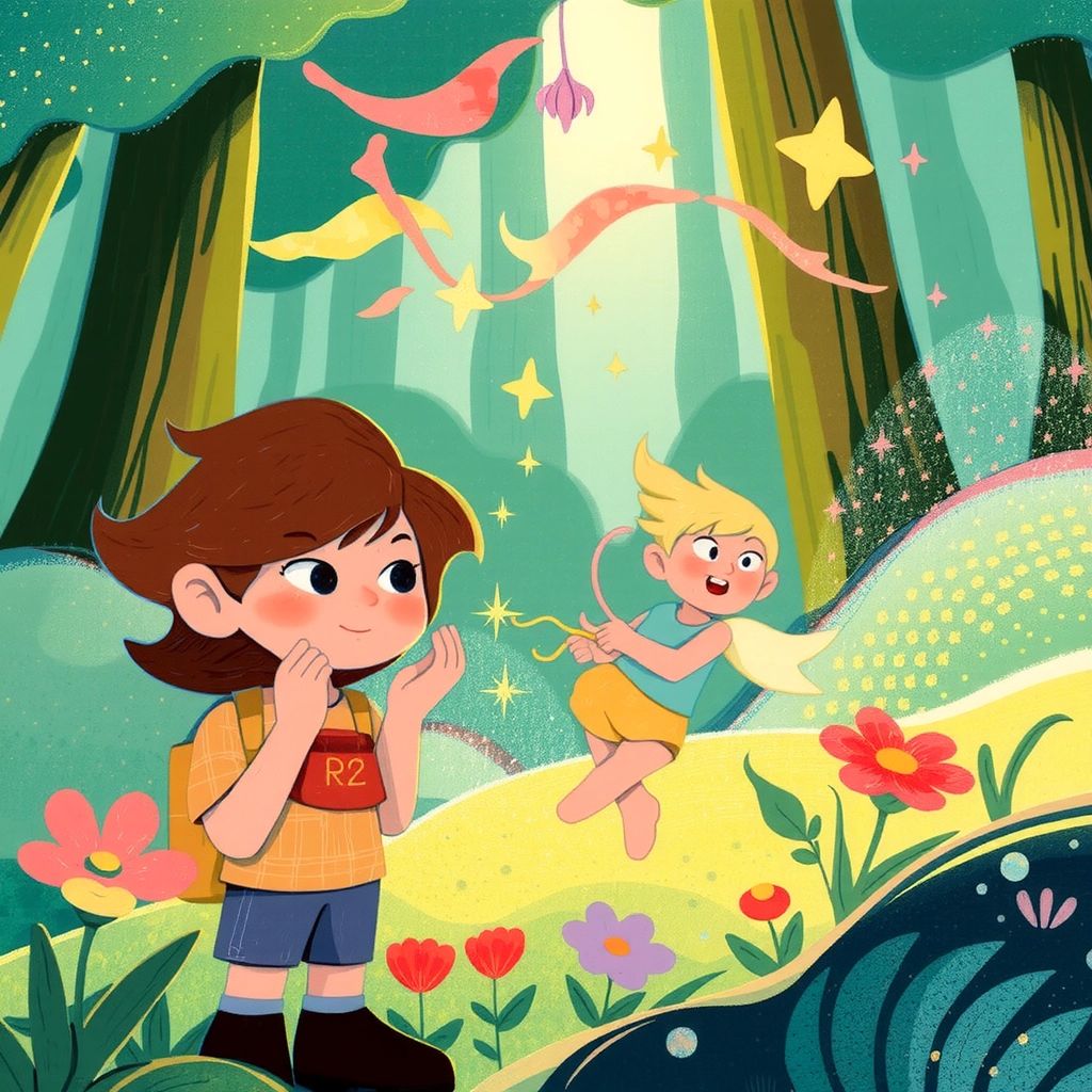 "Hello, [Benjamin](KCVJTLG6)!" chimed [Twinkle](T5GJL6MH), fluttering down with a smile. "To find the lost rainbow, you must gather the colors scattered across this land." With a nod, she handed [Benjamin](KCVJTLG6) a tiny pouch filled with pixie dust to guide his way.