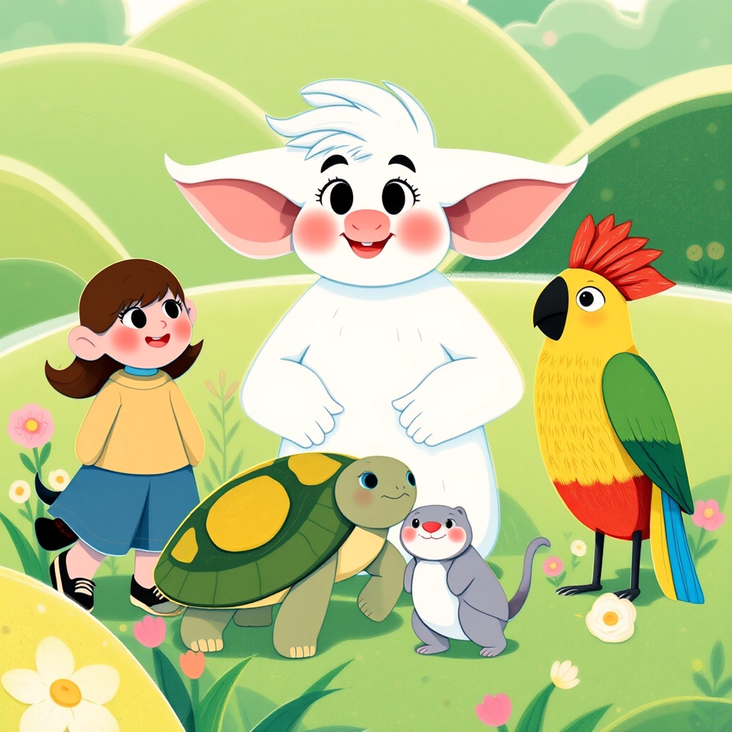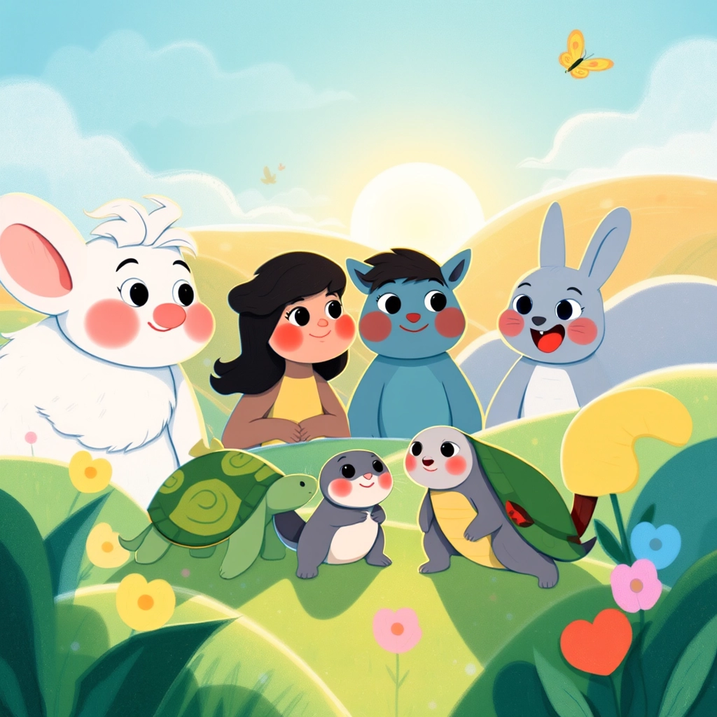 One day, [Benny](Q65TS9TW) told his friends, 'I want to be the bravest bunny in the whole meadow!' His friends—[Tina](M6237Q3C) the turtle, [Max](LPB32QWH) the mouse, and [Polly](NFG5Z9ZD) the parrot—giggled kindly.