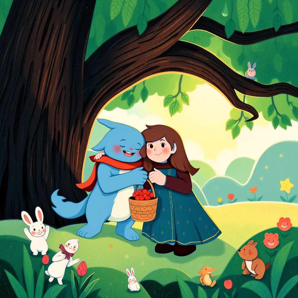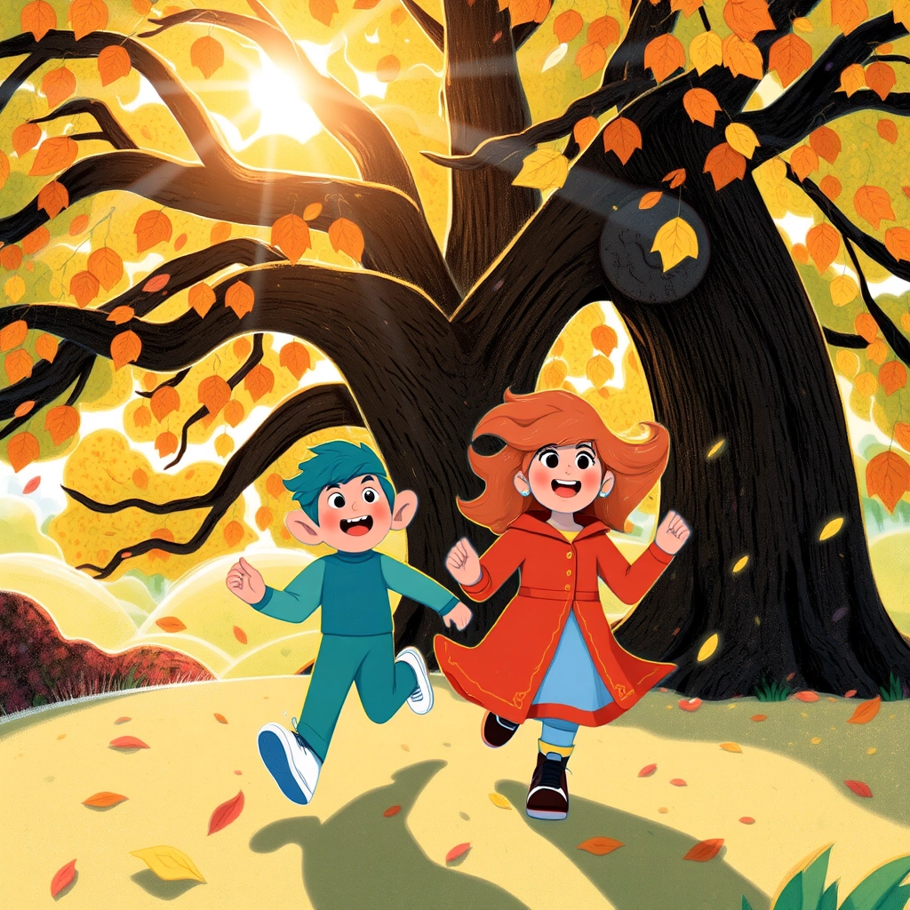 They both ran and ran until they finally spotted each other beneath their favorite oak tree, their hearts bursting with joy.