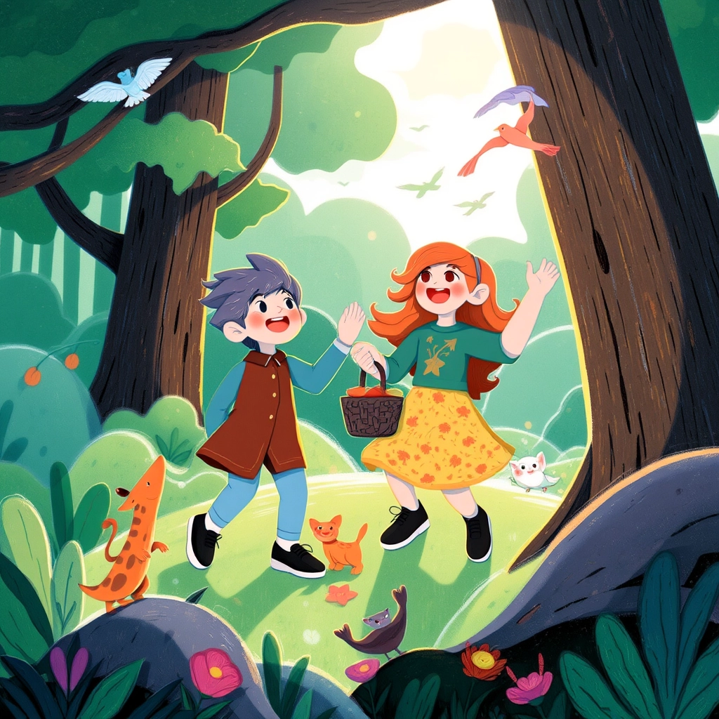 Once upon a time, in a heartwarming forest filled with colorful trees and singing birds, two best friends, [Squeezy the Squirrel](Q44XV9DQ) and [Ruby the Fox](NJ263MHQ), played together every sunny day.