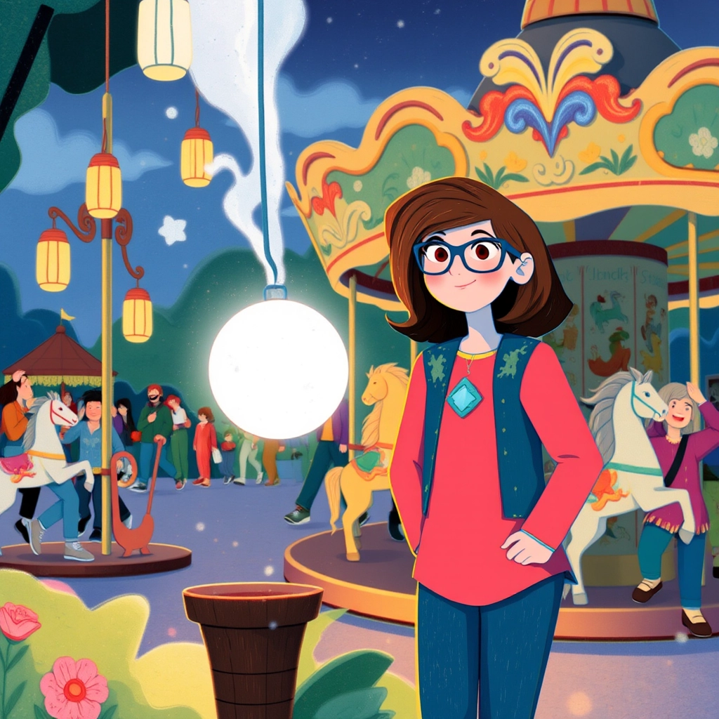 As [Bethany](33M4S3CB) entered the park, she spotted something unusual—a small glowing orb floating near the carousel. Intrigued, she stepped closer to investigate, her heart racing with anticipation.