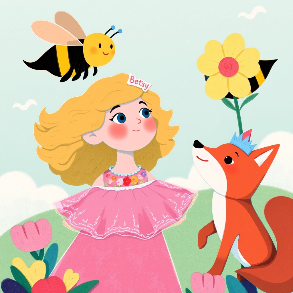 'Of course!' [Betsy](57XJDBJG) said. So [Betsy](57XJDBJG), the fox, and the bumblebee followed the rainbow together, laughing and singing as they went.