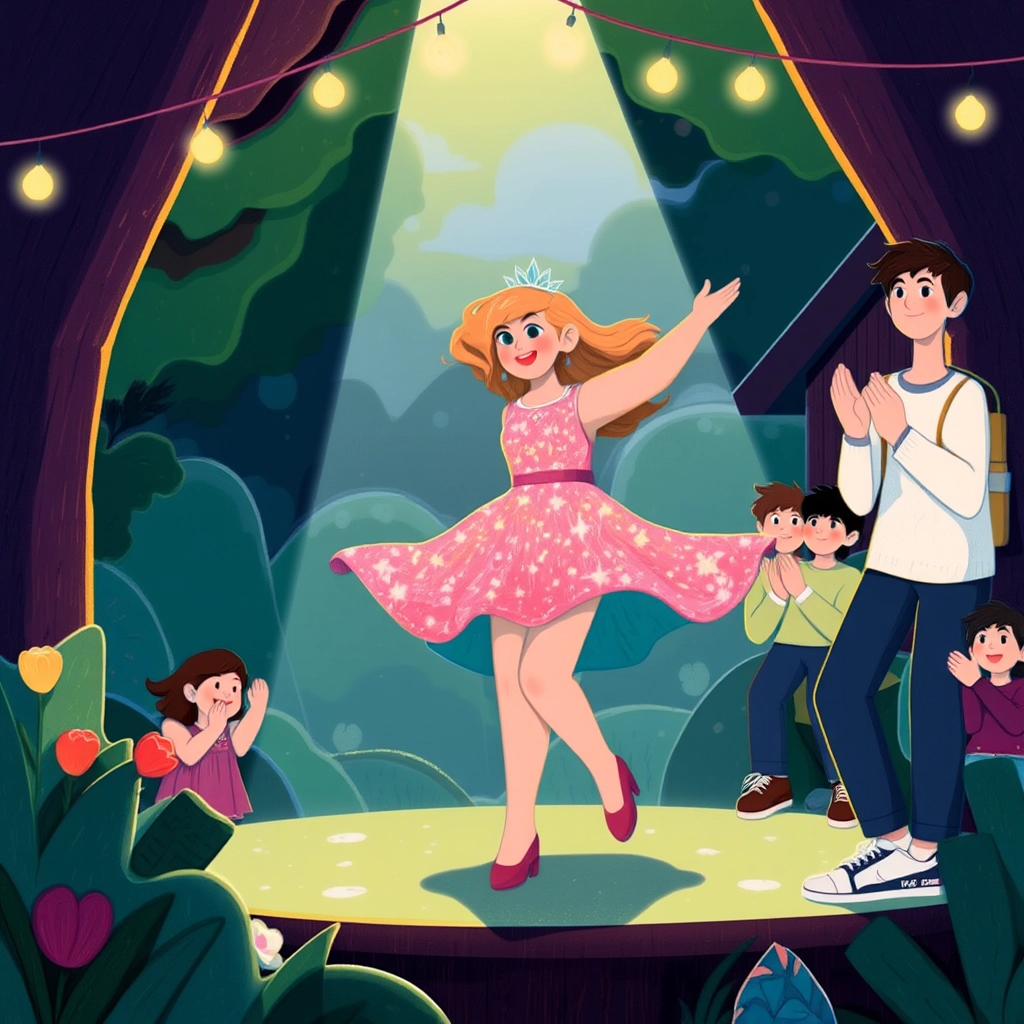 [Bianca](M9Q6BWXL) performed her heart out, singing her favorite princess songs and twirling beautifully. Everyone cheered, filling her heart with joy.