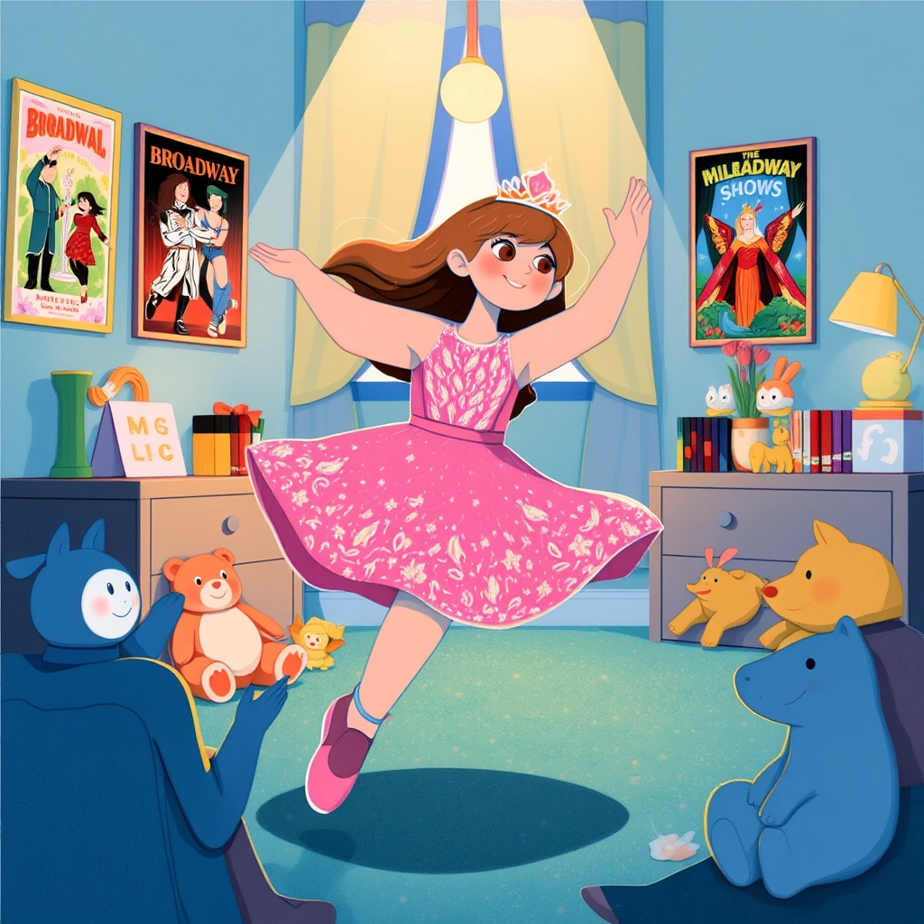 Once upon a time, there was a little girl named [Bianca](M9Q6BWXL) who loved to sing. She twirled around her room in her sparkly pink dress, dreaming of performing on the grandest stage of all: Broadway.