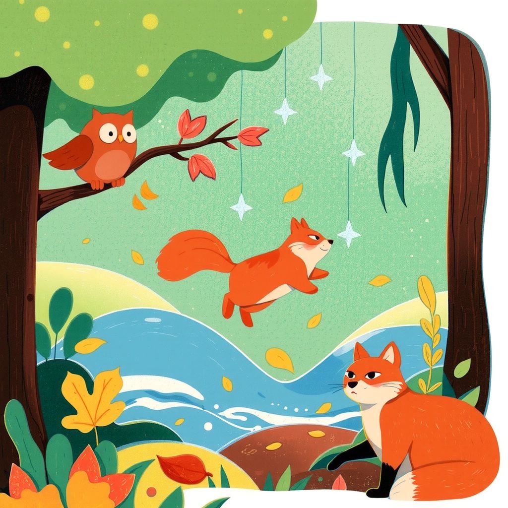 Once upon a time, in the heart of the Whispering Woods, lived three best friends - [Olivia the Owl](FMMW3YQN), [Sammy the Squirrel](35J34N65), and [Felix the Fox](V4WS6TML). They built their homes near a sparkling stream where they loved to play.