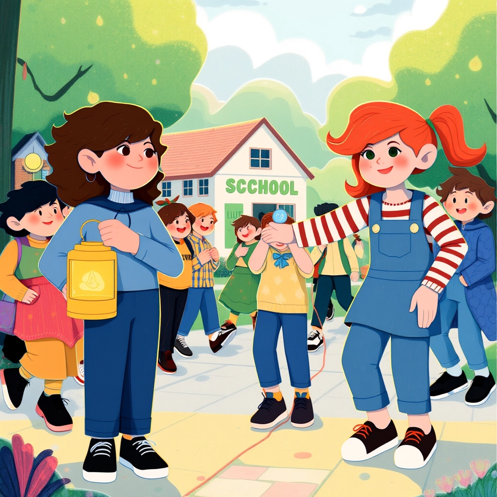The next morning, she carried the lantern to school. It wasn’t magic, but somehow it gave her courage to talk to a girl named [Sophie](6DZ4DD9J). [Sophie](6DZ4DD9J) smiled and invited her to play at recess.