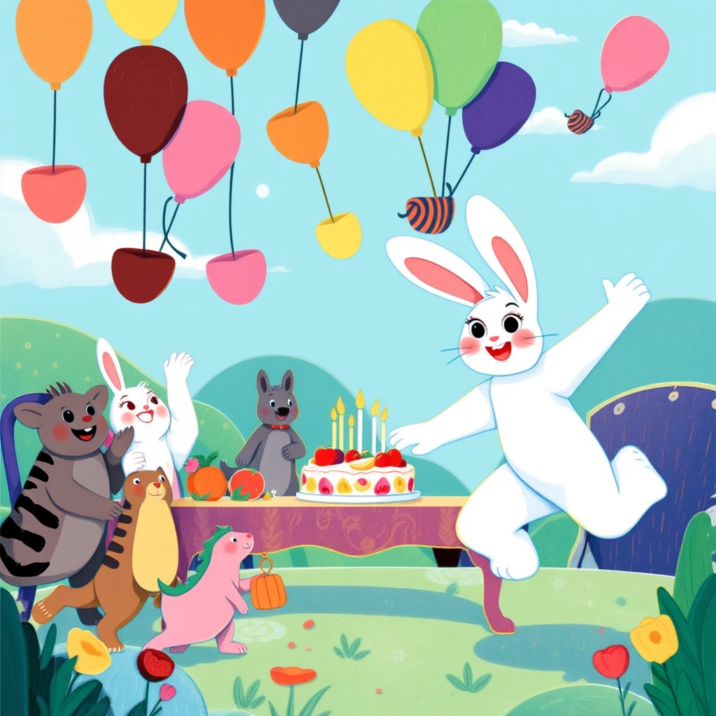 Once upon a time, in a sunny forest, [Bunny](LHGFVNTV) woke up excited. It was his birthday! But wait... none of his friends seemed to remember.