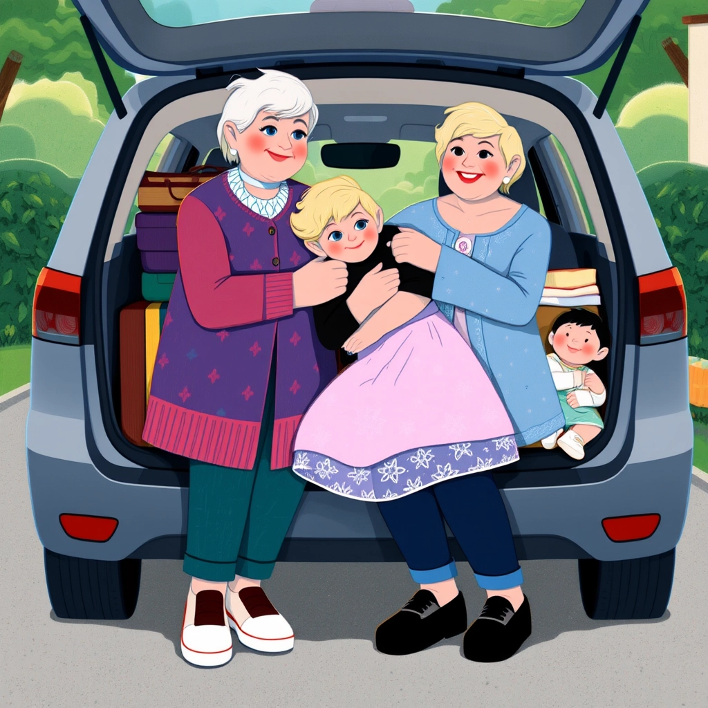It was a bright and sunny morning when [Grandma](DPNGTKZ3) arrived with a wide smile on her face. “It’s our special day!” she said. [Sayge](TFQRP3MQ) twirled in her sparkly princess dress. Baby [Sophia](XFCCZ3GY) giggled in her seat, wiggling her tiny feet.