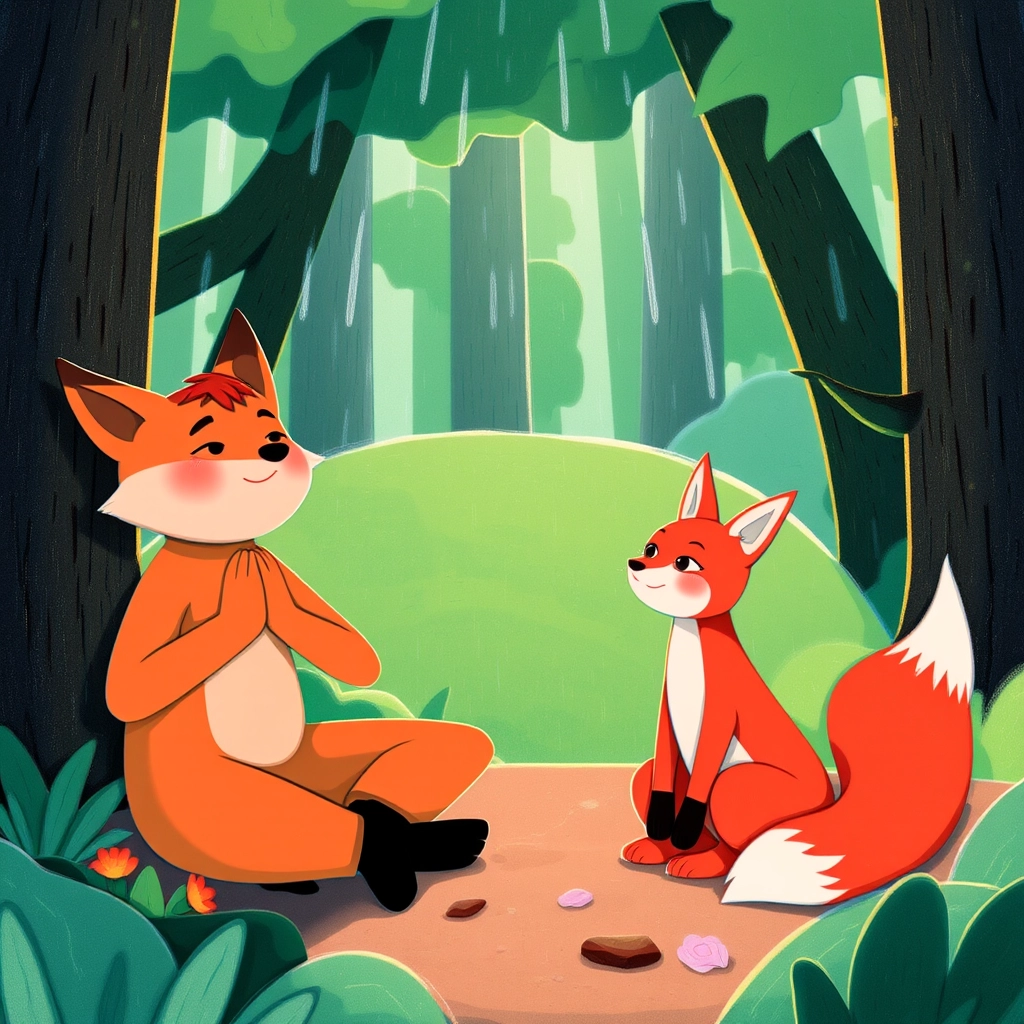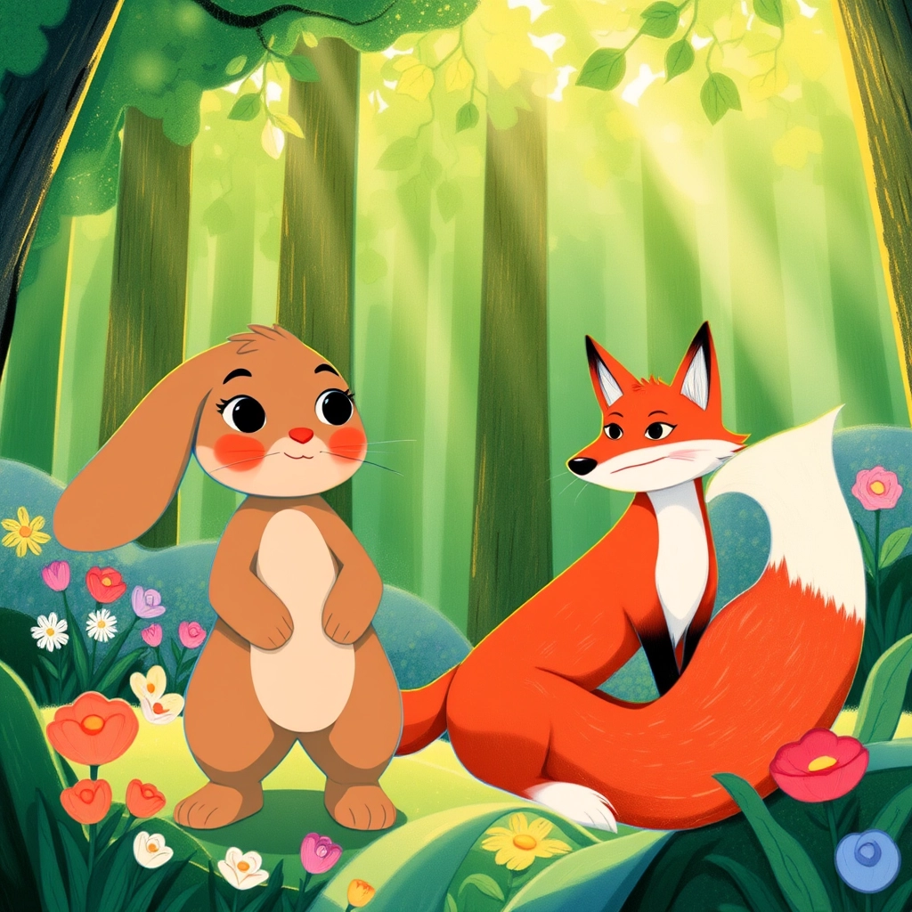 In a peaceful forest, deep among tall trees and blooming wildflowers, lived two best friends: [Benny](N62YD3T6) the bunny and [Felix](TVSZYLTJ) the fox. [Benny](N62YD3T6) was full of energy but often felt a fluttery feeling of worry in his chest. [Felix](TVSZYLTJ), with his calm and wise demeanor, was always ready to help.