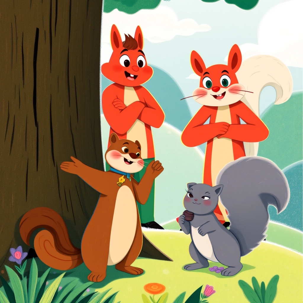 The next day, [Benny](N62YD3T6) saw [Mia](7MJQZDWT) the squirrel, who seemed worried about climbing a tall tree. 'Come on, [Mia](7MJQZDWT),' [Benny](N62YD3T6) said with a bright smile. 'I can show you some tricks that helped me!' [Felix](TVSZYLTJ) watched happily as [Benny](N62YD3T6) began to teach [Mia](7MJQZDWT) about deep breathing and kind thoughts.
