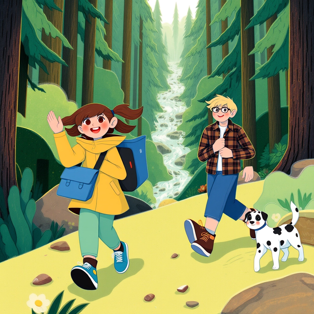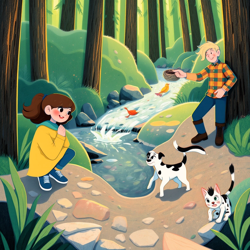 Once everything was ready, [Jake](7HQSMMTW) said, "Let’s look around!" They followed a tiny path that led to a sparkling stream.