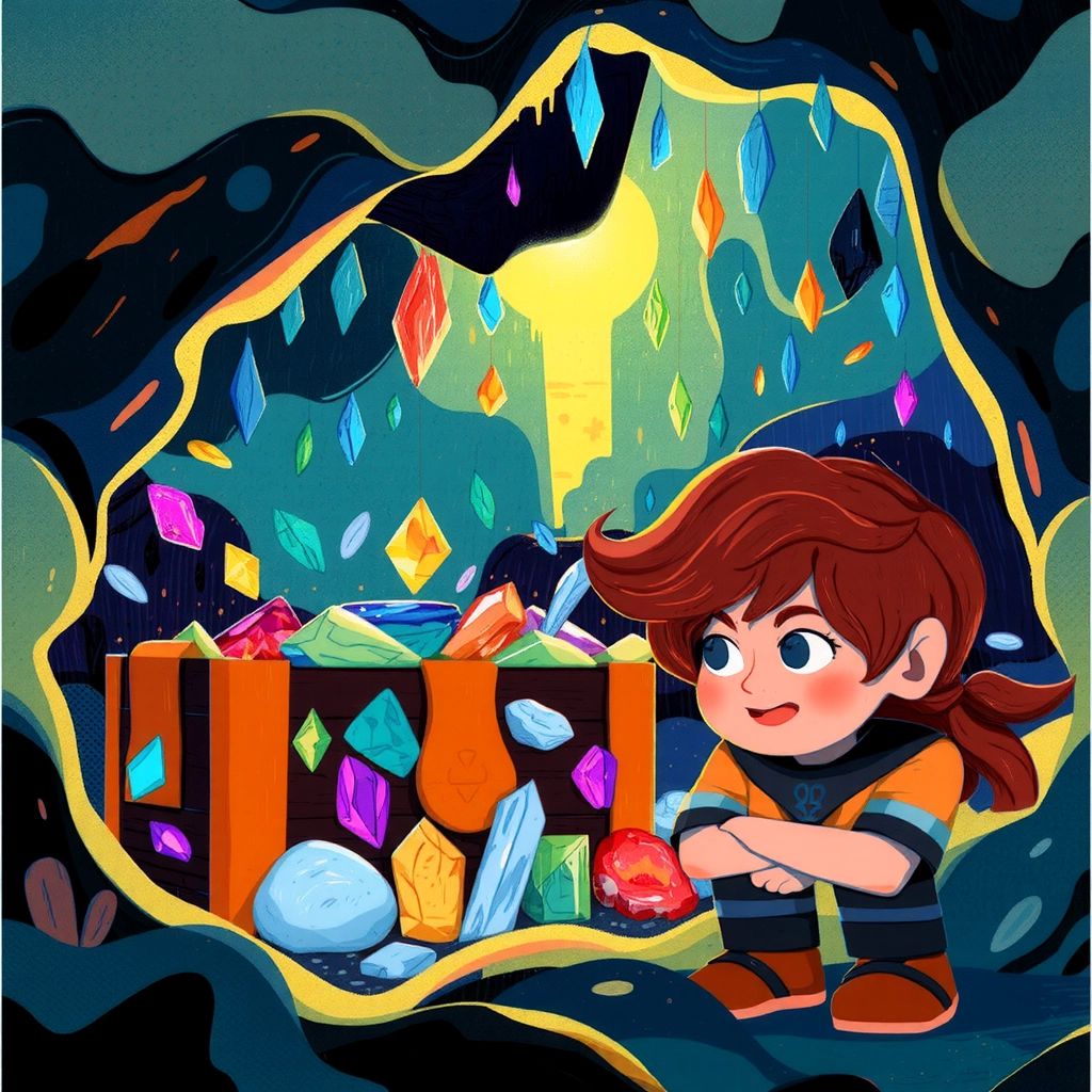 Suddenly, the ground trembled and a hidden cave entrance opened, revealing the magical treasure within — a chest brimming with shimmering gems, golden coins, and a crystal that glowed with the promise of granting wishes.