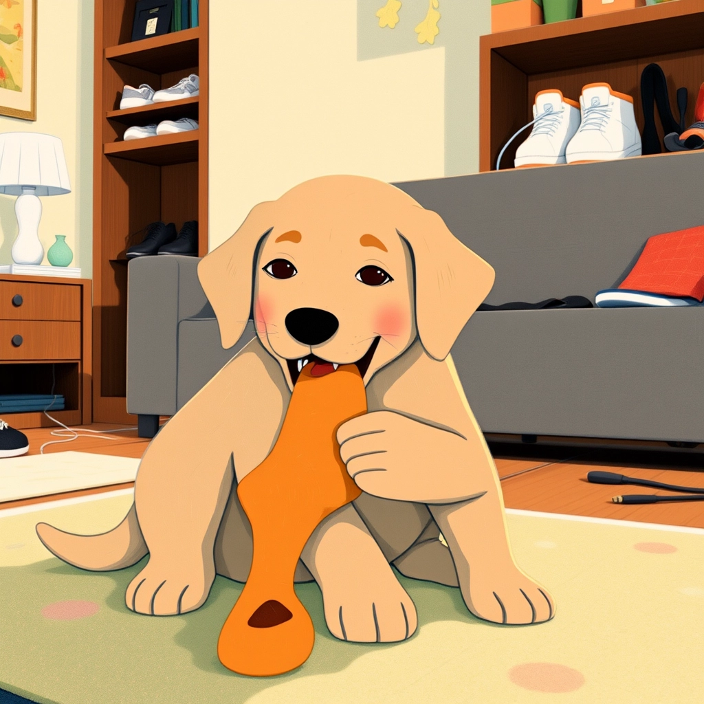 Chewing is normal for puppies, but make sure they chew the right things! Give them safe chew toys and keep anything dangerous, like shoes or cords, out of reach.