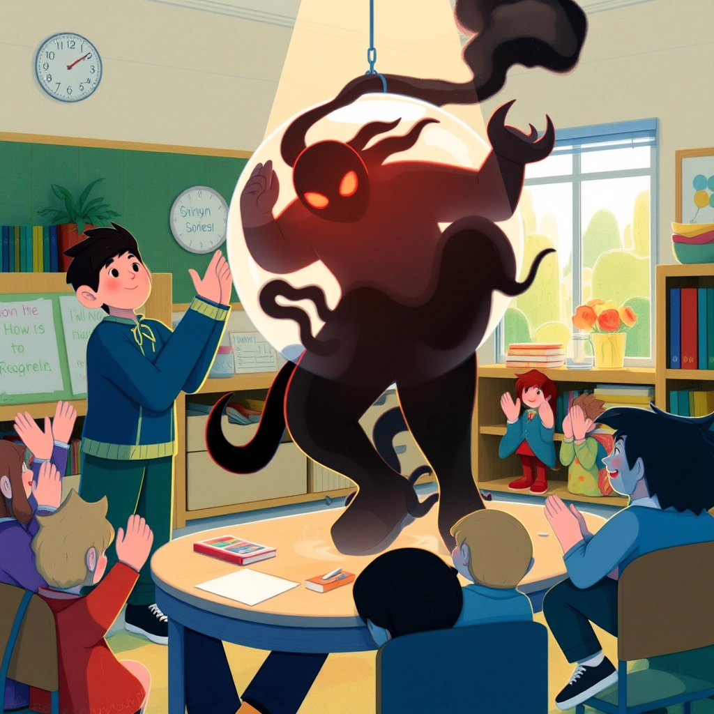 'Enough!' Carter shouted and used his powers to pull a large globe, trapping [Shadow](J3DQ2LSS) inside. The classroom erupted into cheers as [Shadow](J3DQ2LSS) disappeared into the globe.