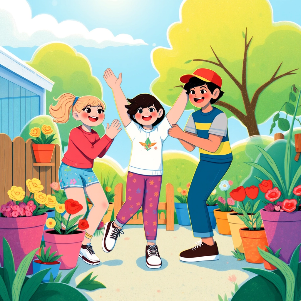 Together, they started practicing in [Lily](DYJ6JFLM)’s backyard. They stumbled and laughed as [Marco](6JGSP3FY) tried to lift [Lily](DYJ6JFLM) into a stunt and [Ava](SNDPGLPB) taught her claps, kicks, and jumps. 'It’s not about being perfect,' [Ava](SNDPGLPB) said, 'it’s about trying!'